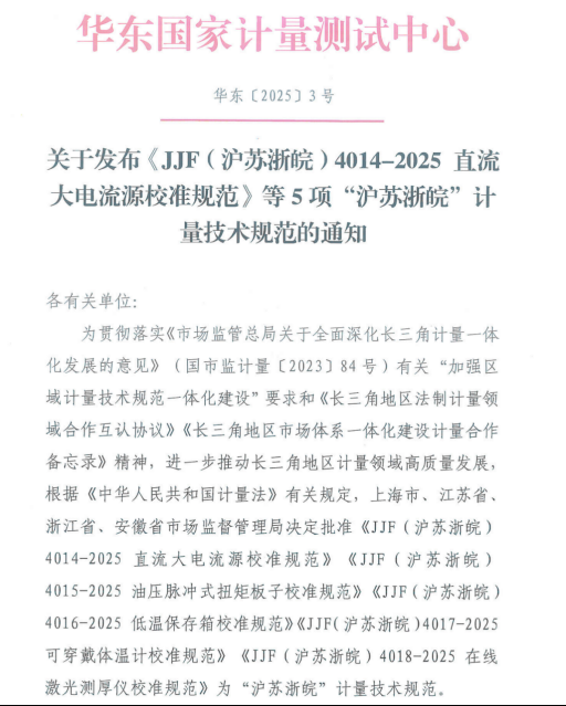 据介绍,长三角地区(沪苏浙皖)计量技术规范是由华东国家计量测试中心牵头,上海市市场监管局会同江苏省、浙江省、安徽省市场监管局联合审核发布。目前,共通过审核发布18项。此次规范的成功制定,是蚌埠市计量科学研究院在长三角计量技术协同创新领域的成功实践,展现了蚌埠计量服务区域高质量发展的能力与担当。它不仅填补了区域空白,更为后续构建跨区域计量技术规范体系提供了可复制、可推广的“蚌埠经验”。(何沛 李娜莉)