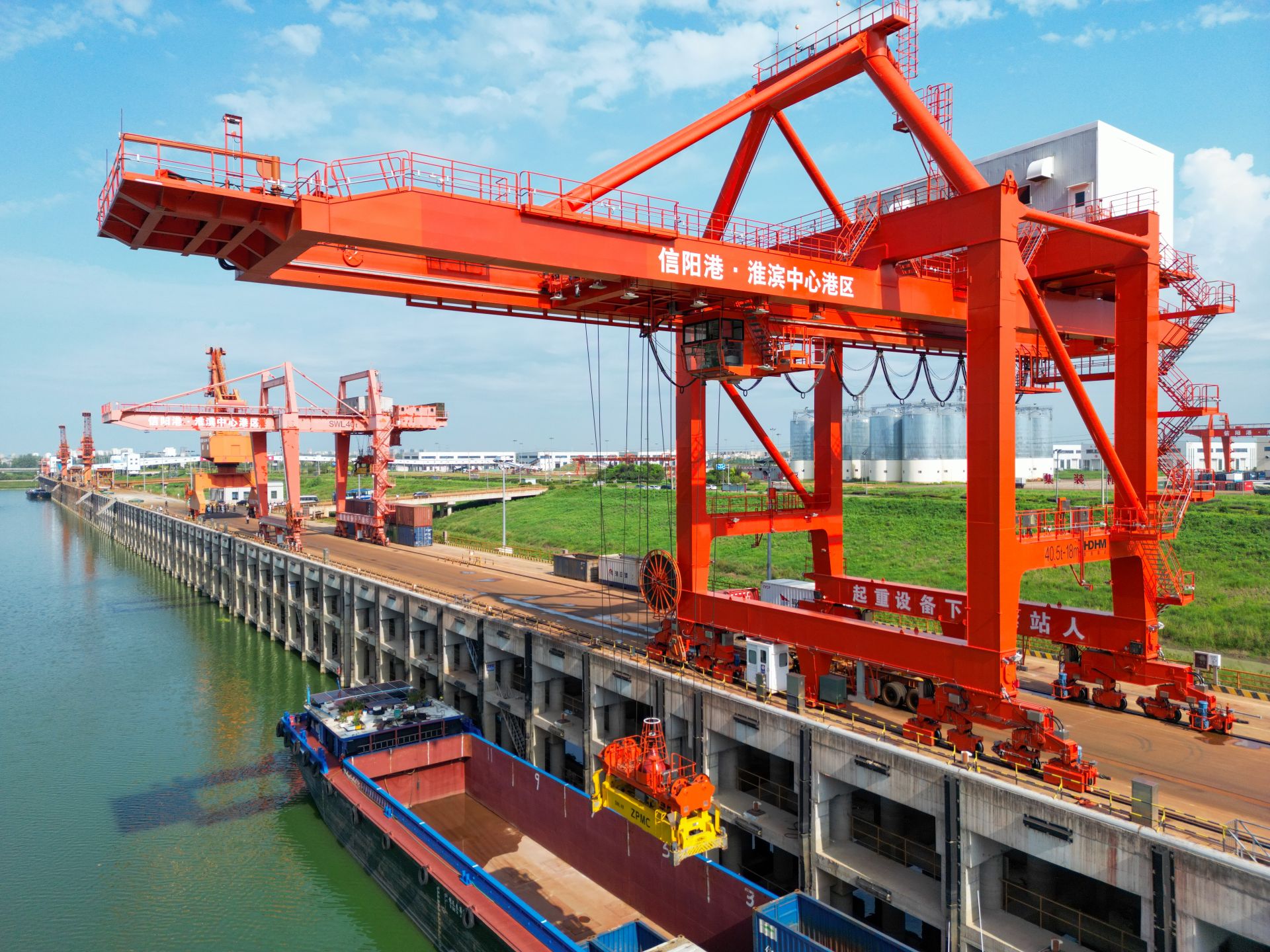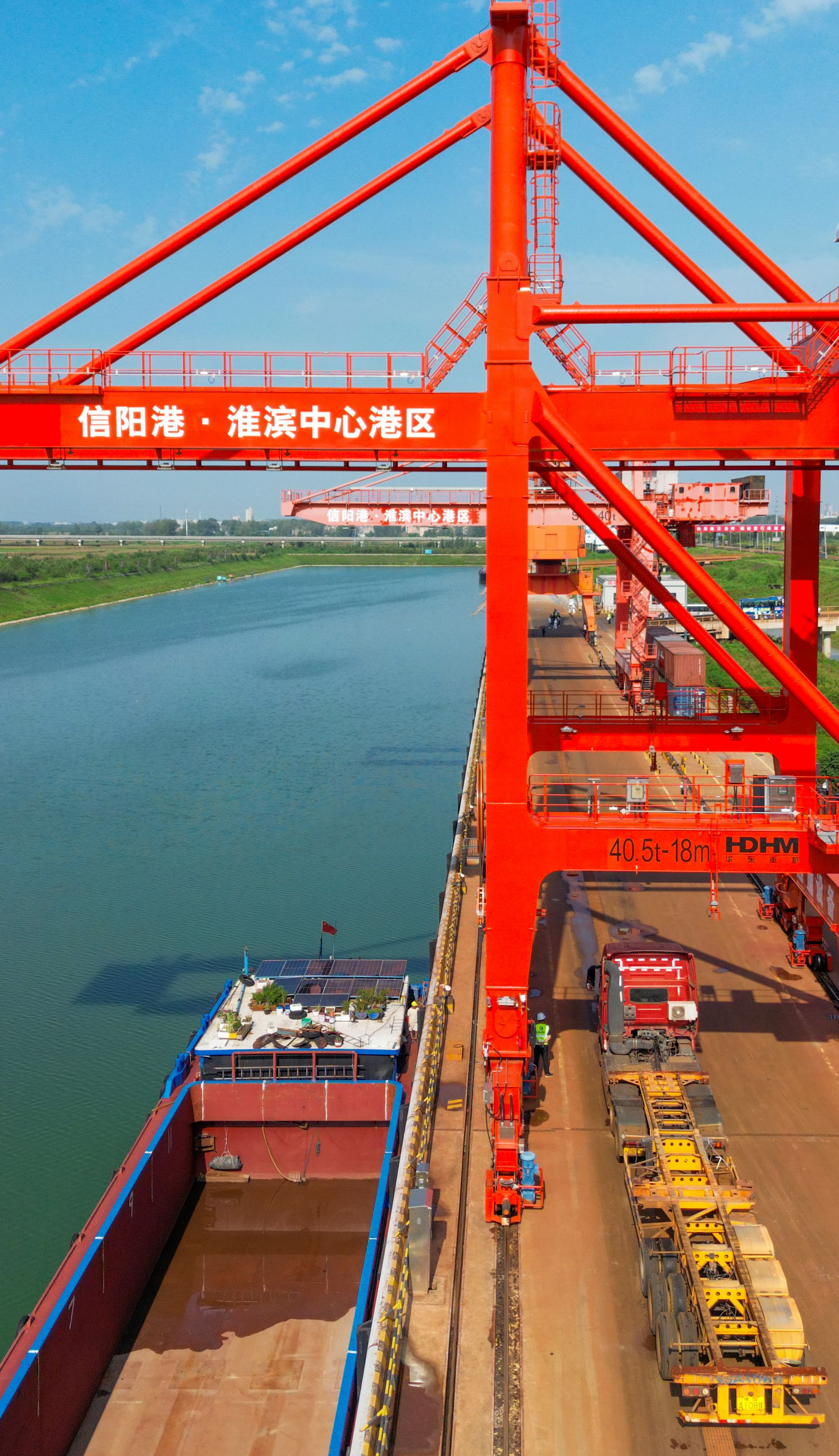 8月26日上午,2025年“千里淮河今安澜·行走淮河”网络主题宣传活动采访团一行来到信阳市淮滨县探访信阳港·淮滨中心港,详细了解淮河航运近年来在运力提升、经济带动、绿色转型等方面的发展成效。(尤靖文)