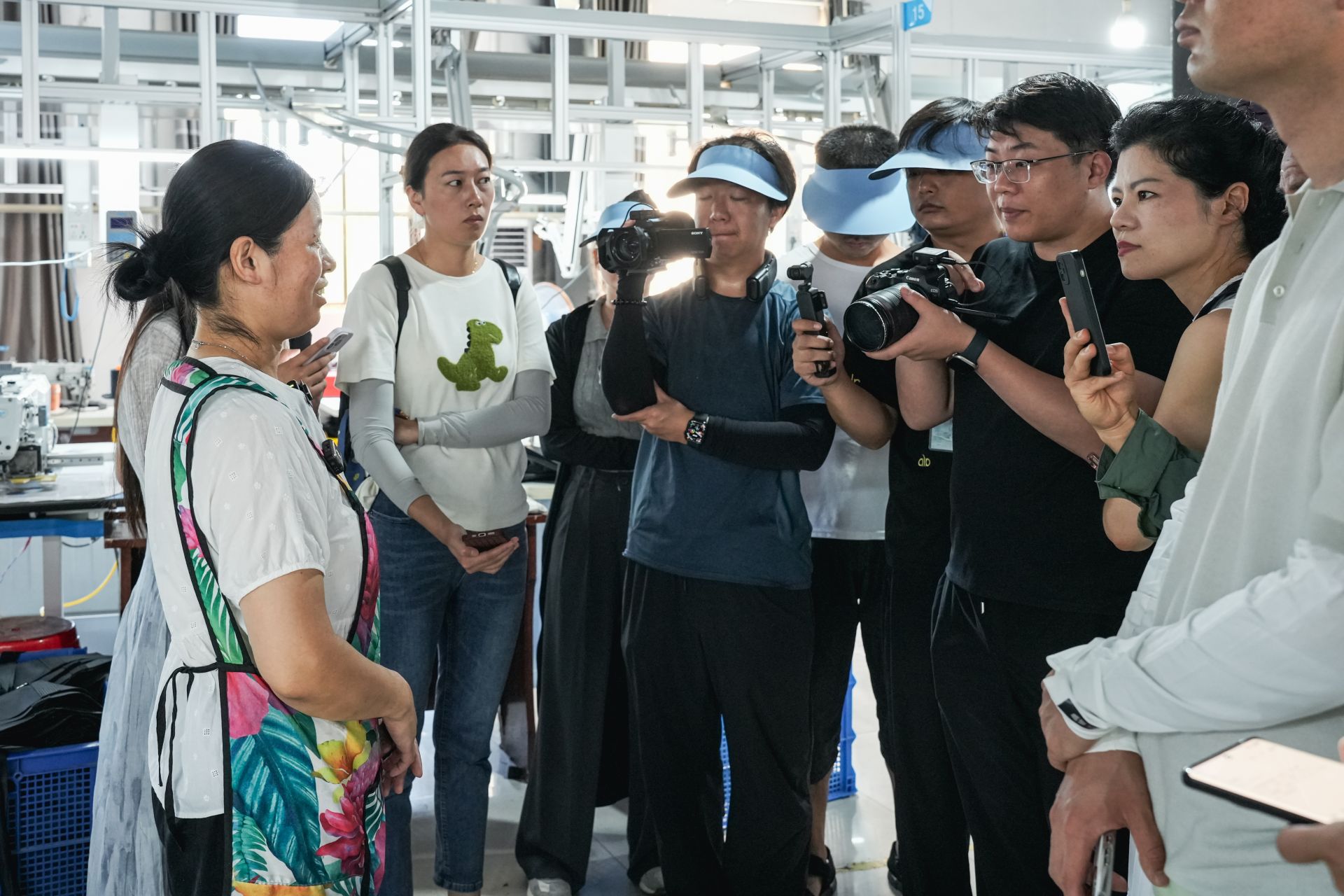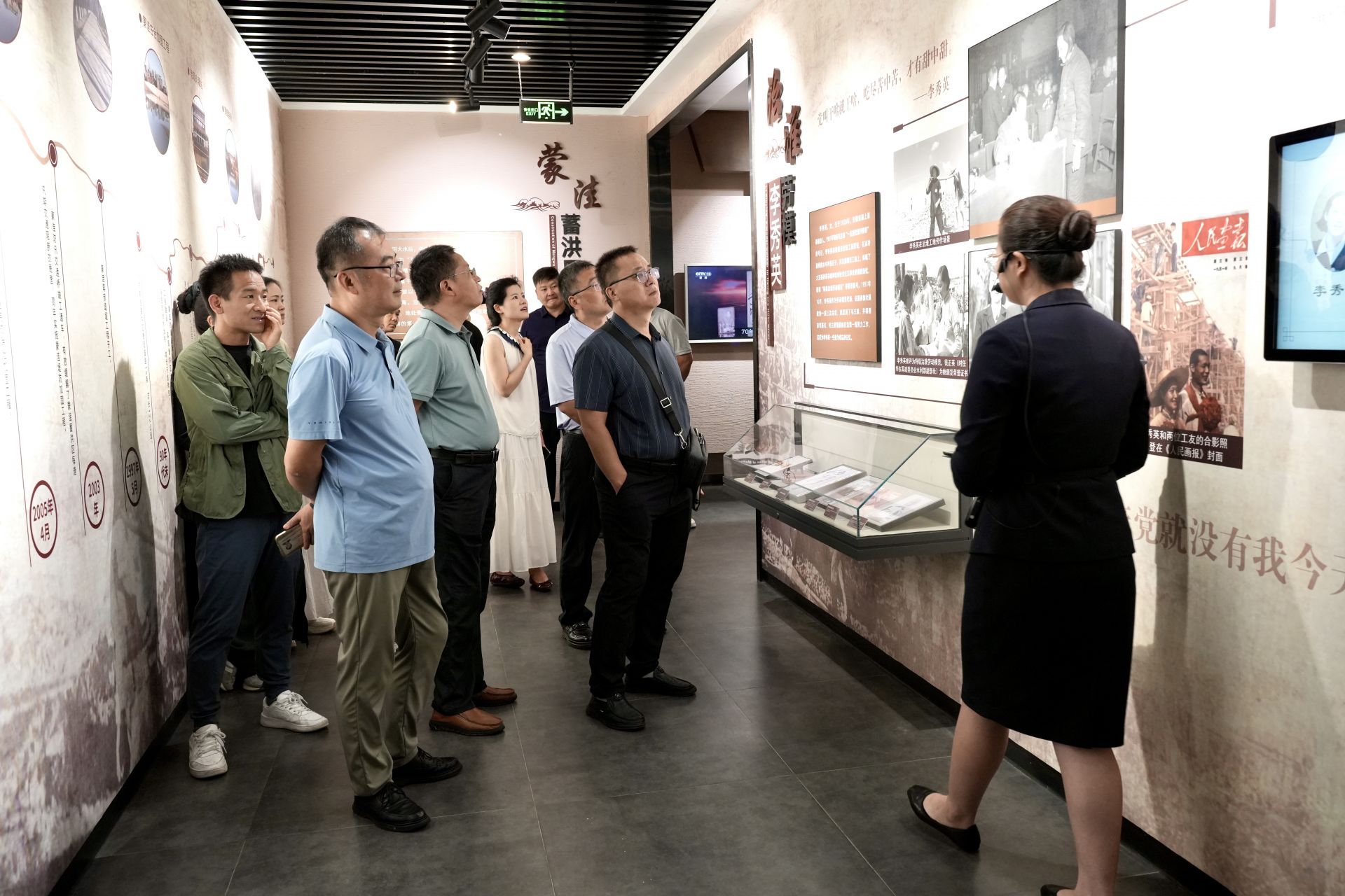 8月27日上午,2025年“千里淮河今安澜·行走淮河”网络主题宣传活动采访团一行来到阜阳市阜南县的红亮箱包有限公司、王家坝闸及抗洪精神纪念馆采访。(尤靖文)