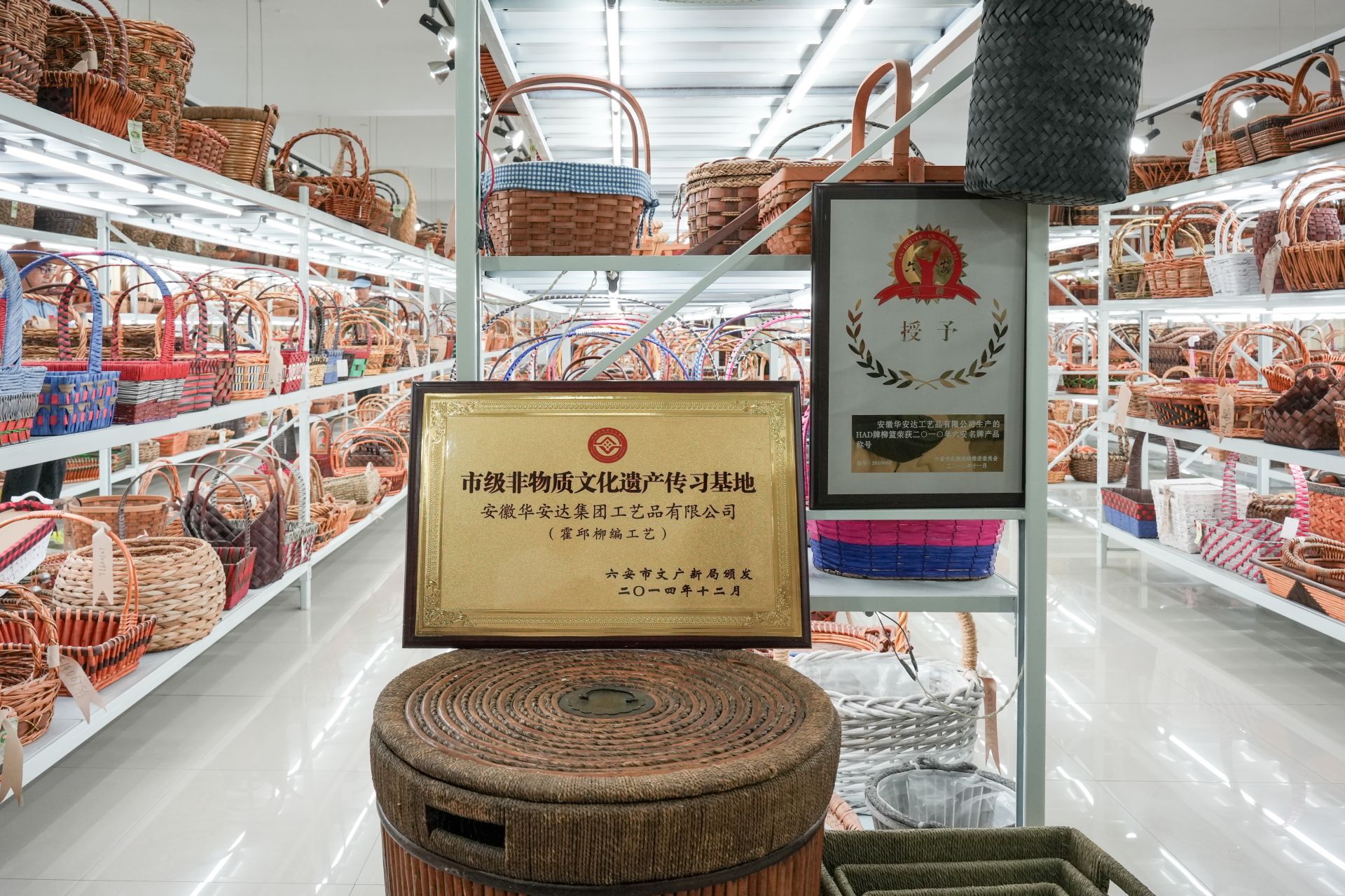 8月28日上午,2025年“千里淮河今安澜·行走淮河”网络主题宣传活动采访团一行来到六安市霍邱县淮美奇工艺品有限公司,采访了解国家级非遗柳编历史发展和技艺传承。(