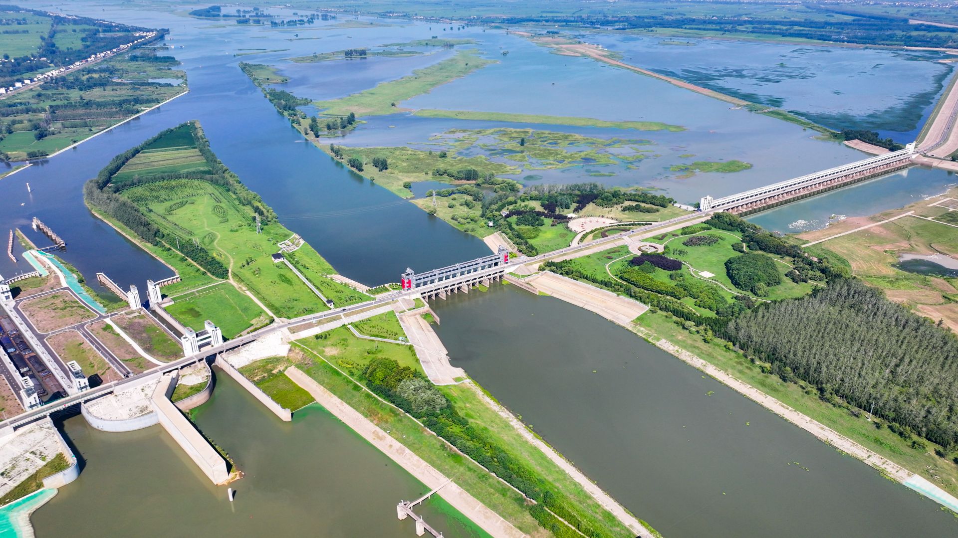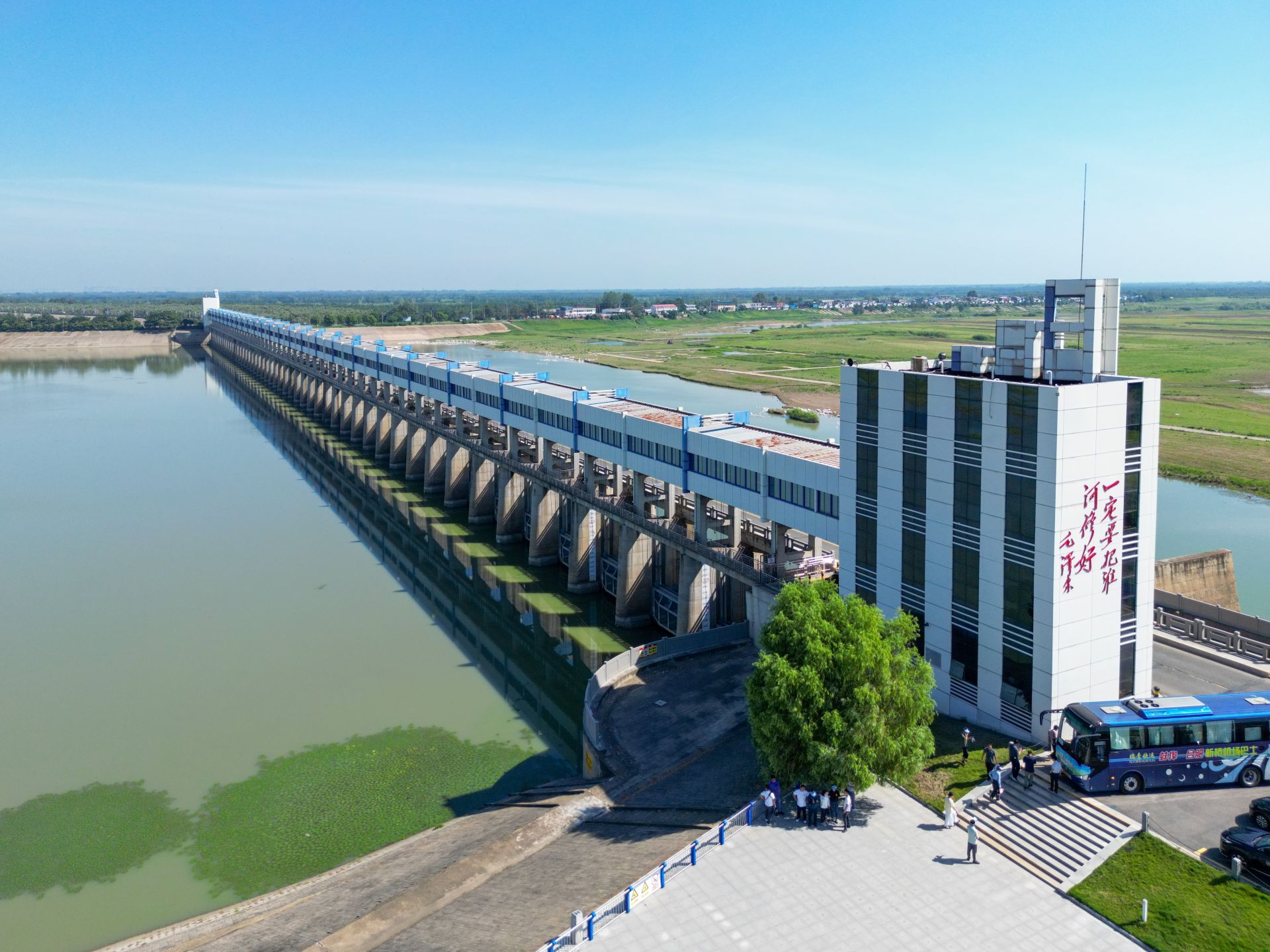 2025年“千里淮河今安澜·行走淮河”网络主题宣传活动采访团来到六安市霍邱县临淮岗洪水控制工程采访