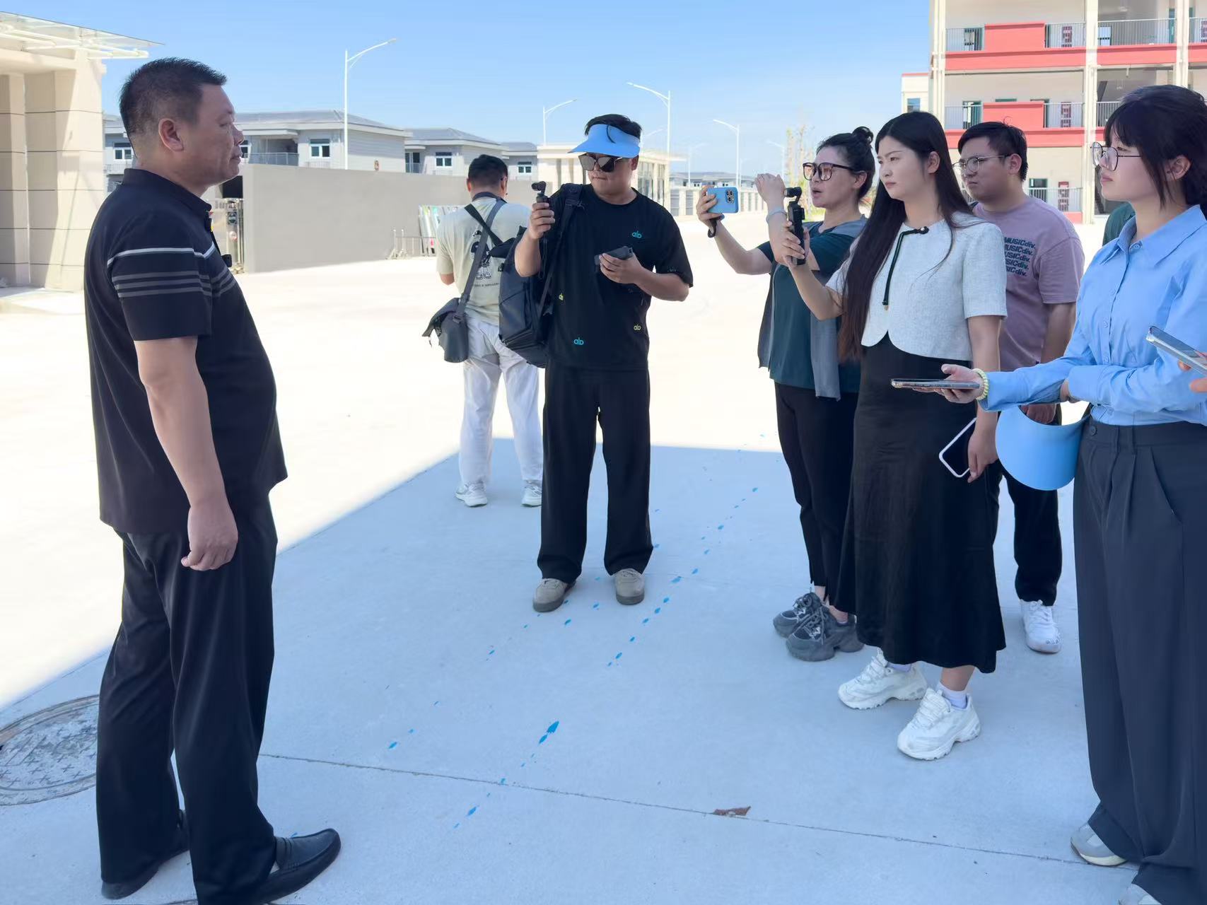 8月28日上午,2025年“千里淮河今安澜·行走淮河”网络主题宣传活动采访团一行来到六安市霍邱县赴淮河行蓄洪区居民迁入安置点(城西湖乡),采访淮河行蓄洪区历史发展、迁建保庄圩工程的建设、居民生活情况。(尤靖文)