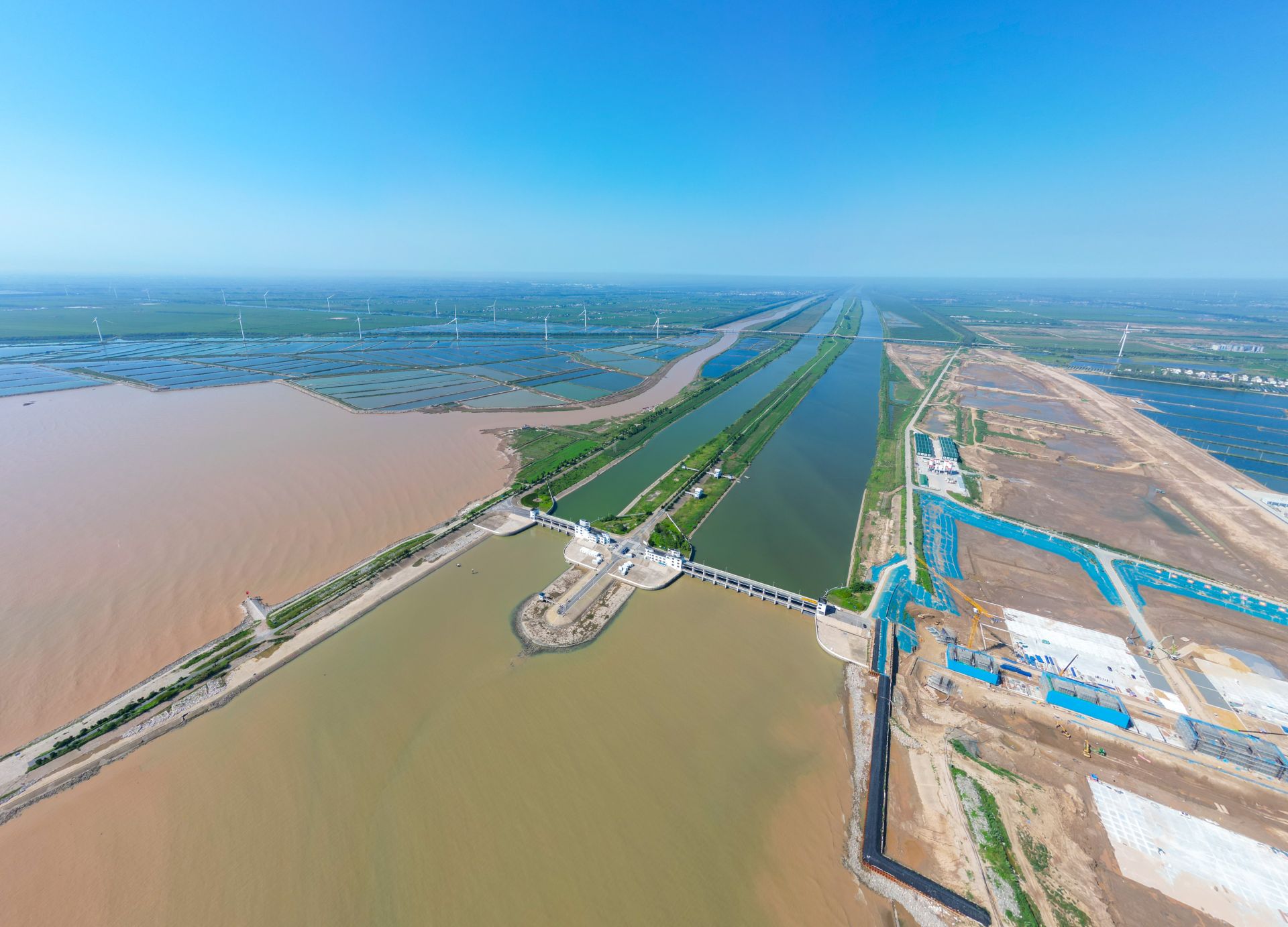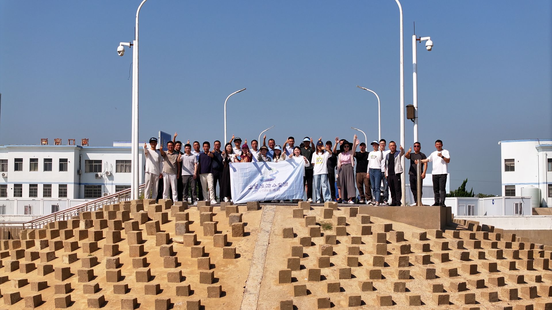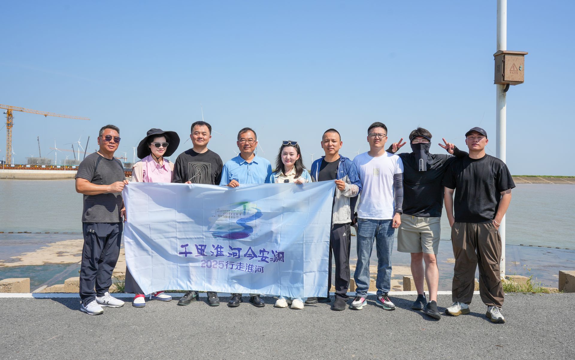 2025年“千里淮河今安澜·行走淮河”网络主题宣传活动采访团来到盐城市滨海县淮河入海水道二期工程现场采访