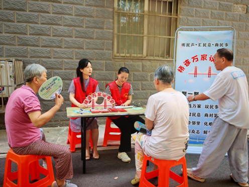 在掌握需求基础上,社区注重“会问”“善问”,借助特色队伍深挖问题症结。对“桥连万家议事会”收集的问题,组织“银龄奶奶团”“老兵说理坊”共同分析:比如针对“小区消防安全隐患问题”,“银龄奶奶团”从老年居民视角提出“看不懂消防标识”“逃生通道不熟悉”等细节,“老兵说理坊”则从管理角度分析“消防宣传不到位”“设施检查不及时”等原因,避免停留在表面;面对“独居老人无人照料”的问题,通过议事会和两支队伍联动追问:是子女不在身边,还是社区服务未覆盖?是老人不愿麻烦人,还是帮扶形式不贴心?通过层层“发问”,找准问题关键。