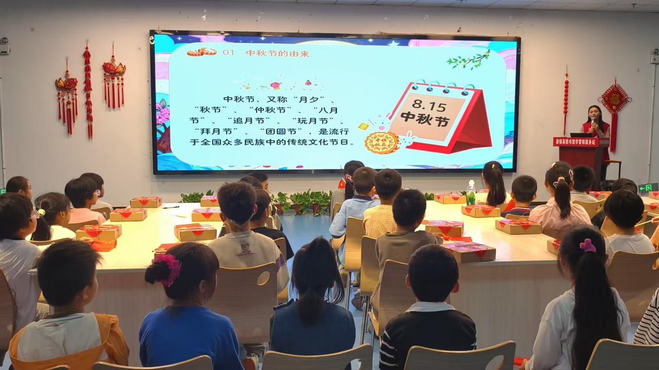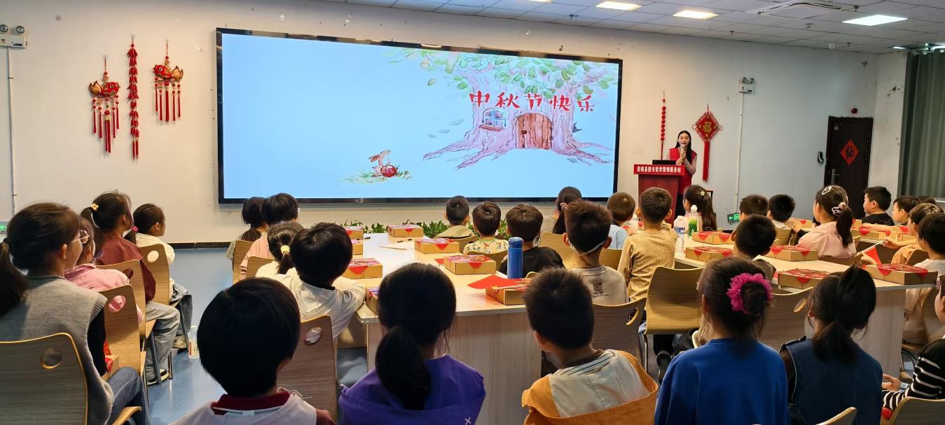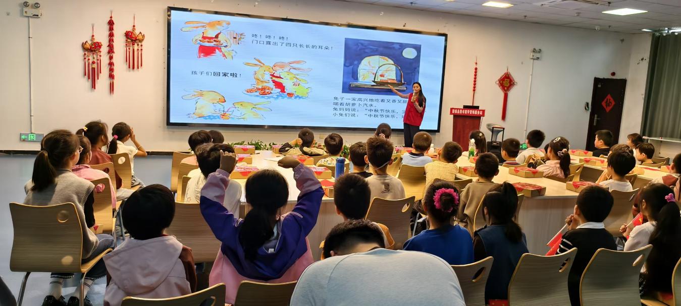 图书馆阅读老师率先热情欢迎到场师生,并揭晓了为孩子们精心准备的“甜蜜”心意。第一个环节聚焦“中秋节的由来”,阅读老师娓娓道来,从古老祭月到嫦娥奔月,让孩子们在故事里读懂了团圆的温暖。
