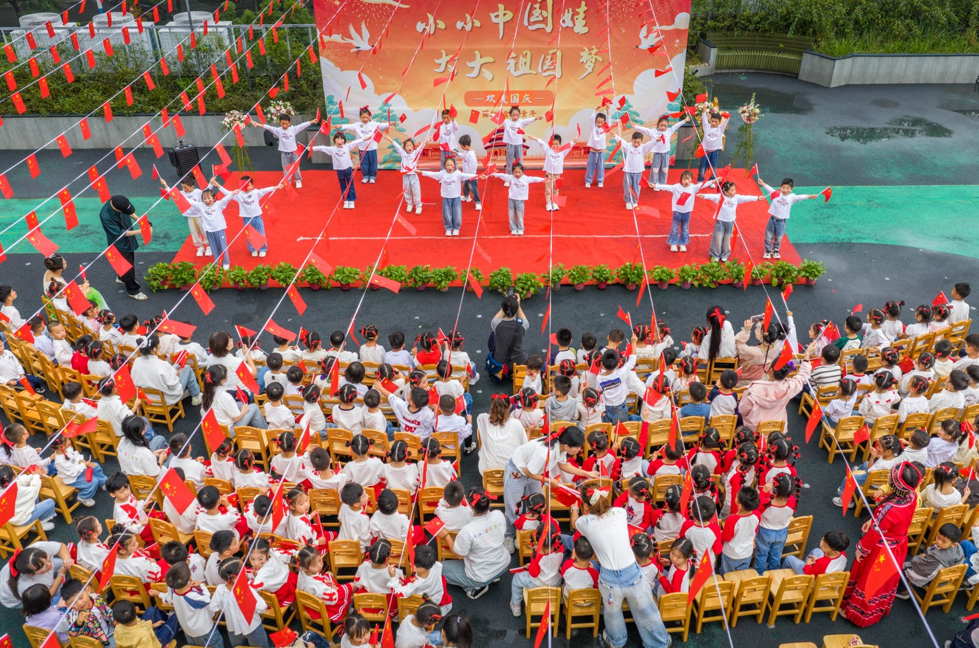 金秋送爽,丹桂飘香。为庆祝中华人民共和国成立76周年,激发幼儿的爱国情怀,9月30日,蚌埠市金色童年幼儿园内一片欢声笑语,一场以“小小中国娃 大大祖国梦”为主题的欢庆国庆活动隆重举行。全园师生盛装出席,用纯真的童心与炽热的情感,表达对祖国母亲最诚挚的祝福。此次活动不仅为孩子们提供了一个展示自我的舞台,更是一堂生动而深刻的爱国主义教育课。歌声与欢笑中,金色的童年与红色的信仰交相辉映。我们相信,今日的“小小中国娃”,必将承载着“大大的祖国梦”,成长为明日建设祖国的栋梁之材。
