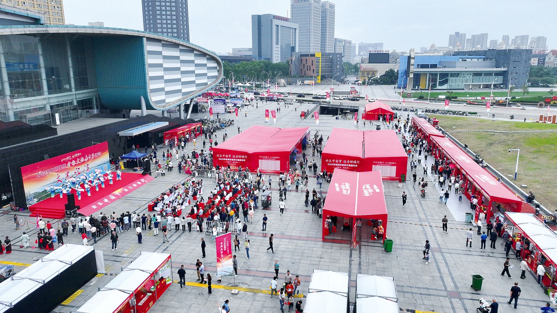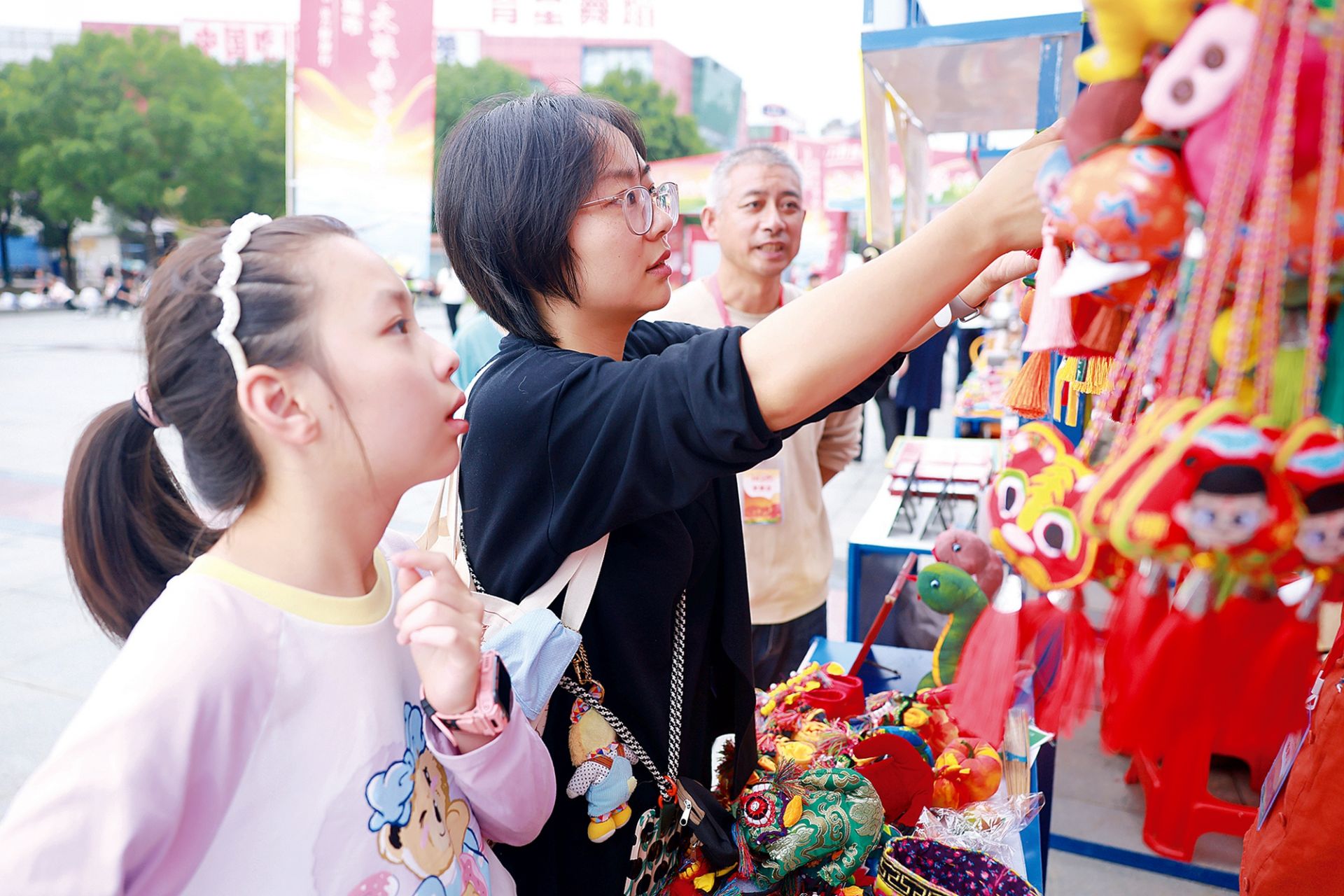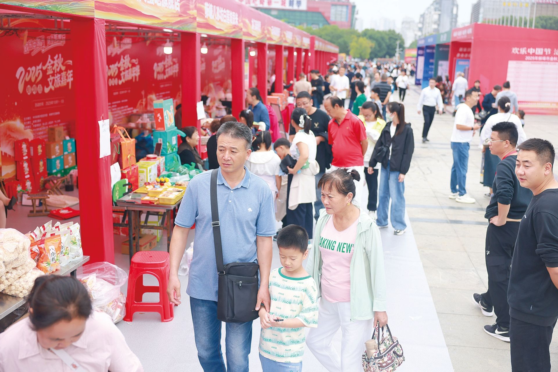 10月1日,淮河文化广场西广场,“欢乐中国节 活力蚌埠行”2025年蚌埠市金秋文旅嘉年华活动现场,市民选购中意商品。