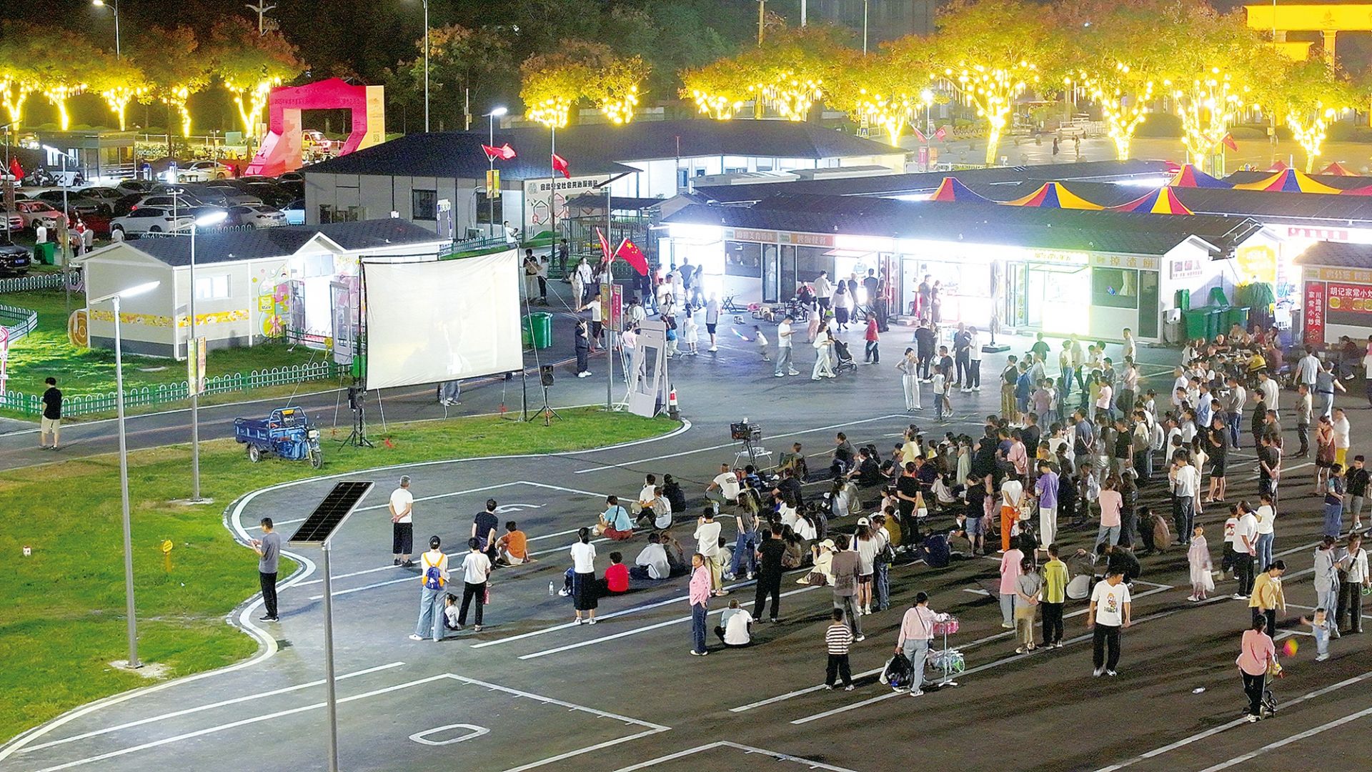 10月6日,市民在青春市集观看露天电影。