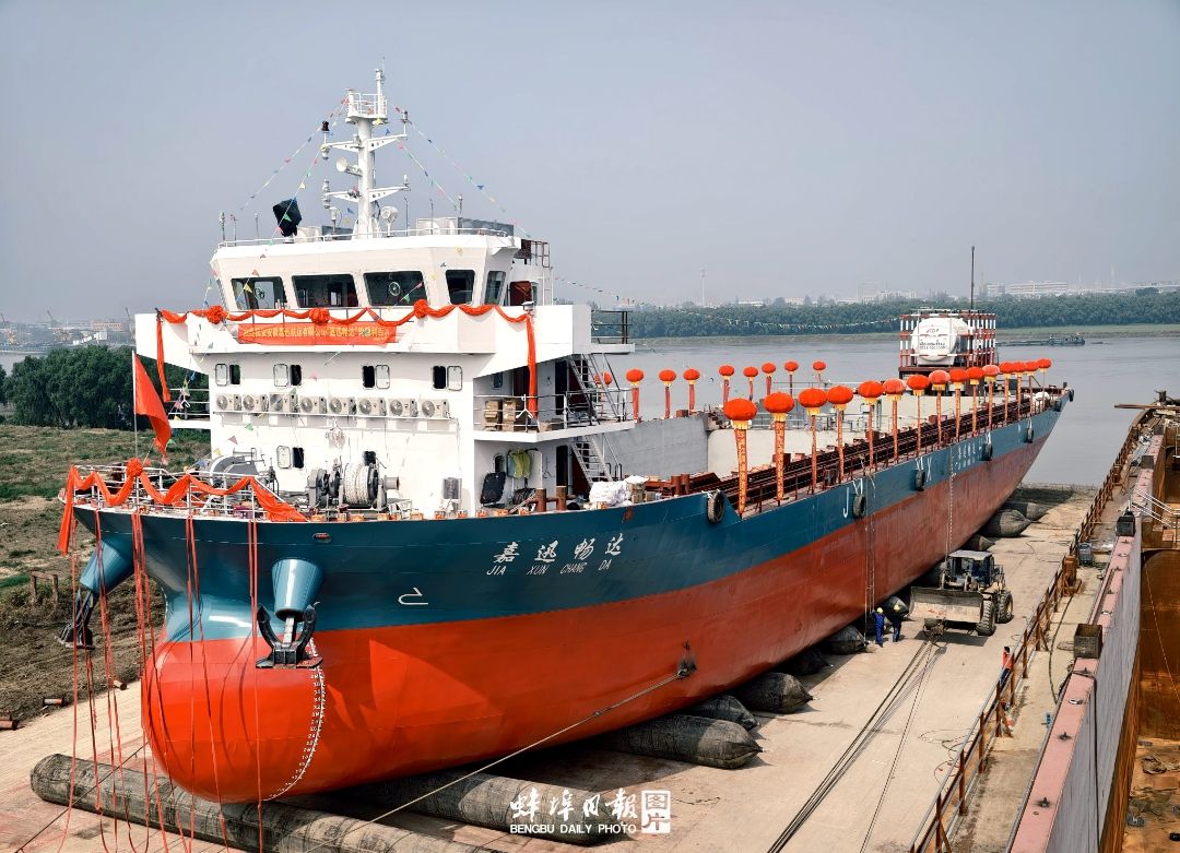 10月10日,皖北首艘“蚌埠造”LNG新能源货轮“嘉迅畅达”号在蚌埠市淮河造船有限公司正式吉水投运,开启我市绿色航运新篇章。