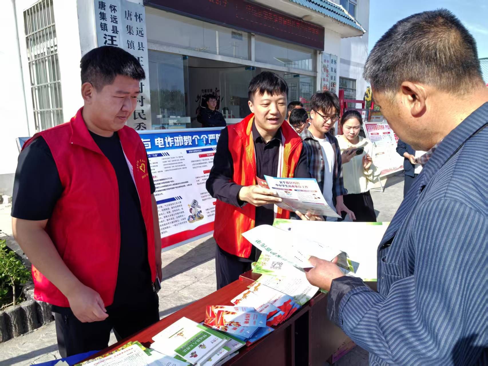 依托“靶向宣传”,夯实认知根基。针对老年人、留守群体等易受骗人群,唐集镇定制反诈内容,镇政府联合派出所民警进村用“方言讲案例”,拆解刷单返利、冒充电商客服等高频骗局。志愿者在集市、村口组建“流动宣传队”,通过情景模拟普及“三不一多”反诈口诀,现场悬挂反诈横幅、发放宣传传单,让抽象知识变成直观提醒,切实打通宣传“最后一米”。