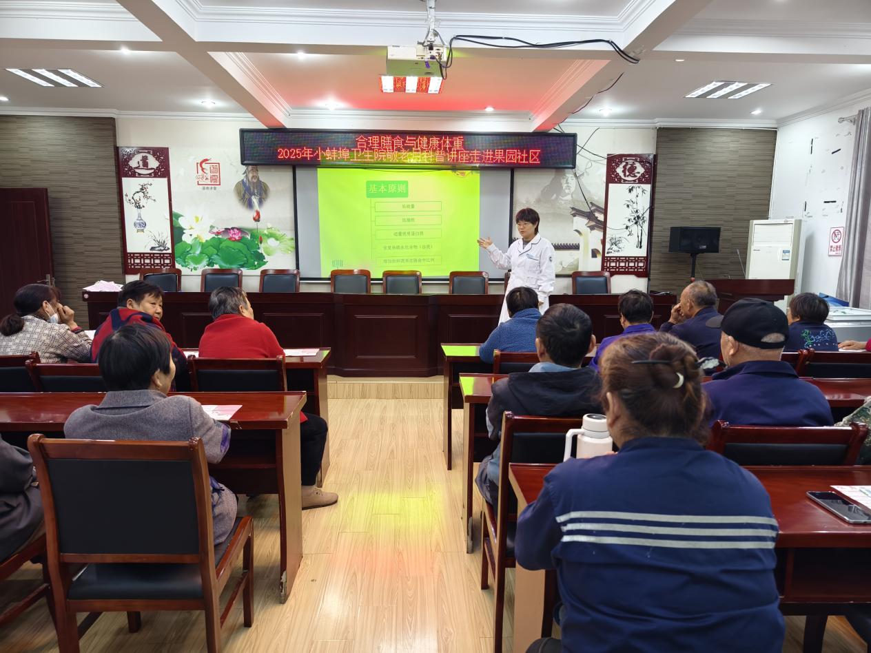 为进一步提升社区居民的健康意识,帮助居民树立科学的饮食观念,掌握健康体重管理方法,近日,淮上区小蚌埠镇果园社区联合镇卫生院开展“合理膳食与健康体重”科普讲座,吸引了社区50 余名居民积极参与,现场氛围热烈,收获了居民们的一致好评。