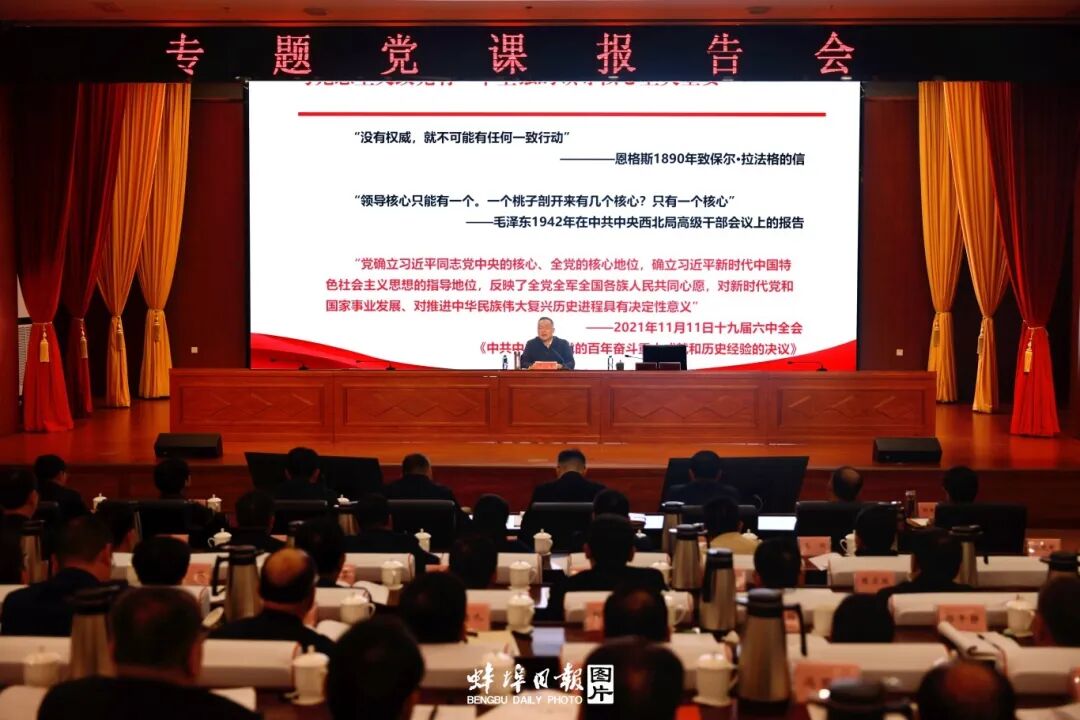 10月20日上午,市委书记、市长马军到市委党校,以“用党的创新理论武装头脑、指导实践、推动工作,加快蚌埠振兴”为题,为党校主体班学员作专题党课报告。市委常委、宣传部部长李波主持报告会。
