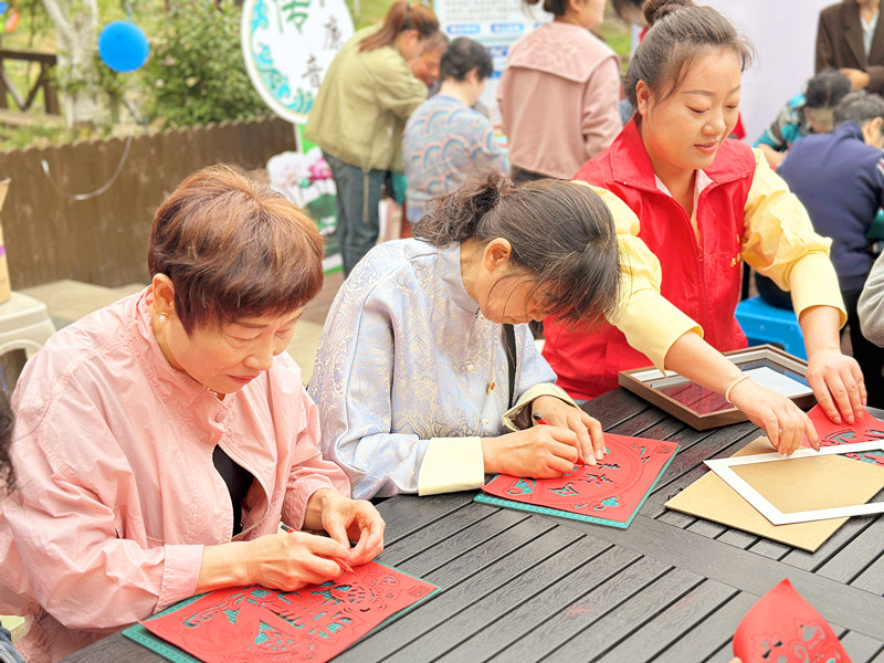 近日,走进文锦路社区居民邻里节的“集市”现场,这边的非遗漆染摊位正带领居民近距离触摸传统技艺的温度,只见参与者轻轻摇曳一盏盏白底的灯笼,随着漆水流动,各色各样的漂漆灯笼就在大家手中诞生;那边的非遗剪纸摊位前大家交流更加热烈,不一会儿融合了集体智慧的剪纸造型便摆满桌面。此外,还有投壶纳福、套圈、拓印福字……各类文娱活动让社区居民约上邻居、走出家门,感受“赶集”的快乐。