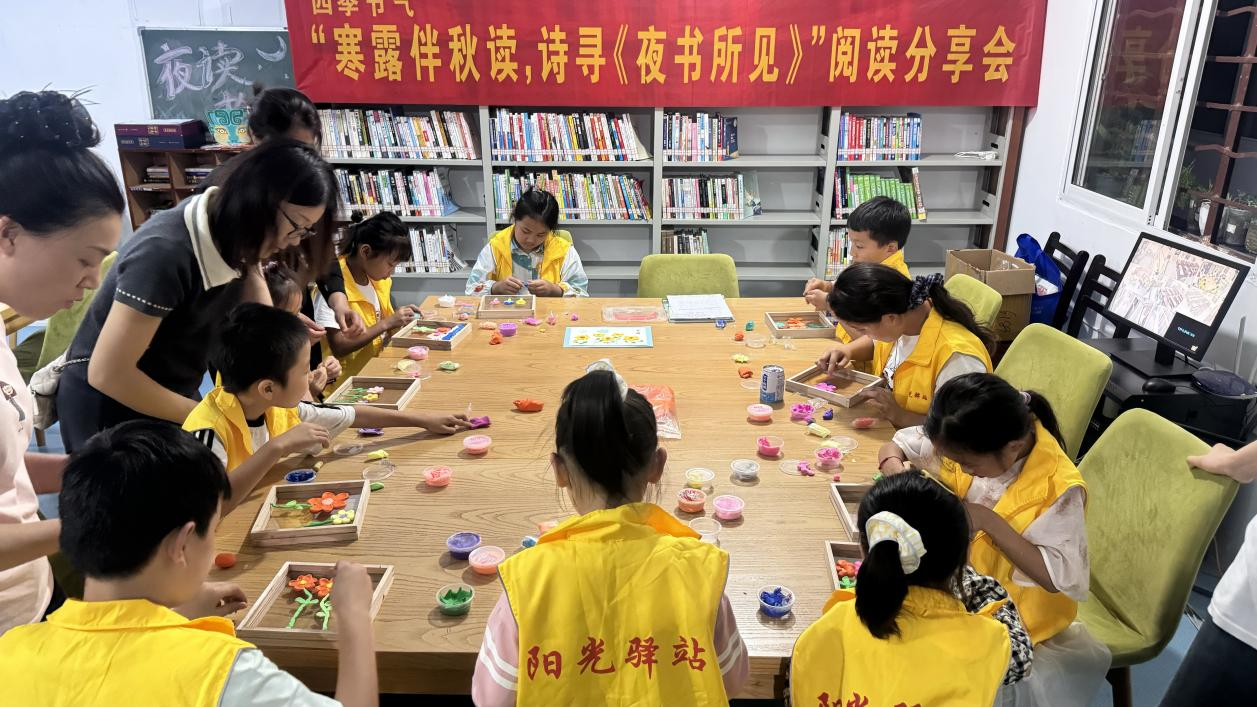 10月7日晚,北城图书馆“寒露至,秋意浓”活动如期而至。志愿者老师先解寒露物候,“鸿雁来宾”“菊有黄华”的自然之美与吃芝麻、饮秋茶的习俗娓娓道来;再领读叶绍翁《夜书所见》,“萧萧梧叶送寒声”的思乡意境在诵读中流淌;最后开启“菊之韵”黏土DIY,小读者揉、压、粘之间,普通黏土化为形态各异的秋菊,在创作中收获节气文化与手工乐趣。