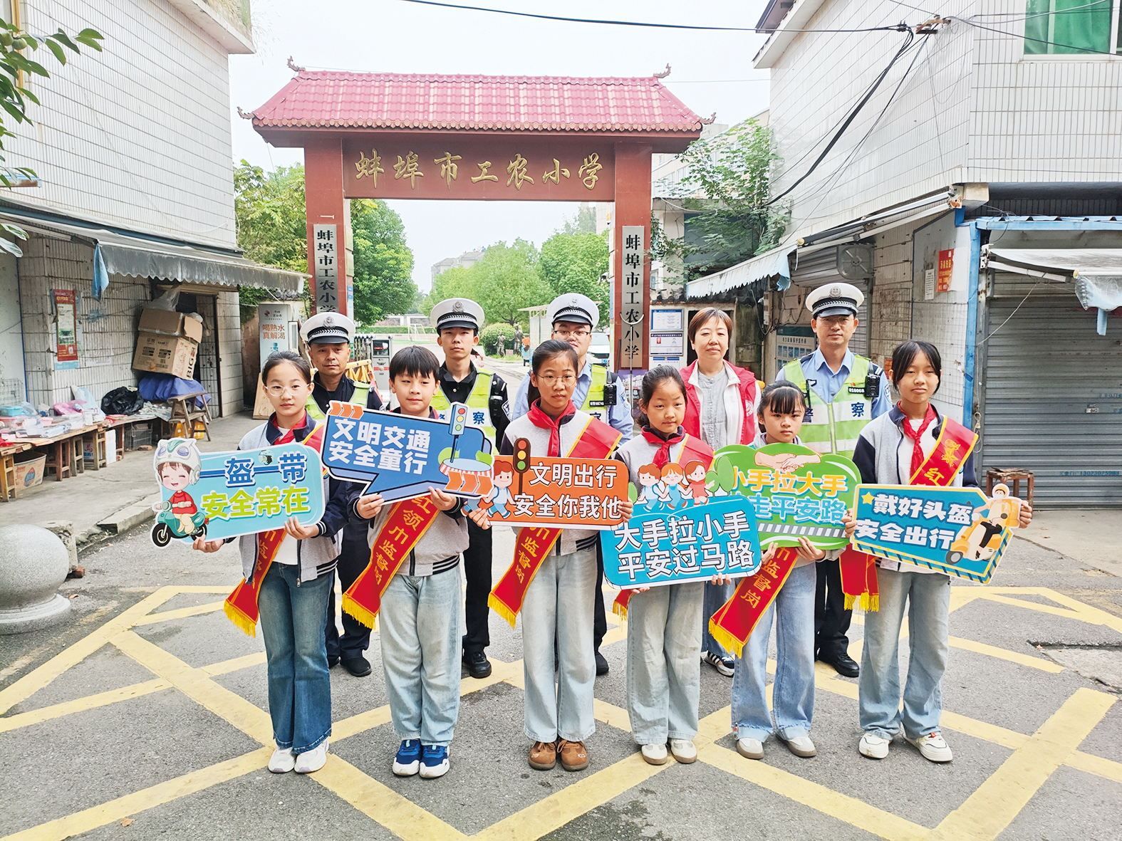“红灯停,绿灯行,过马路要走斑马线……”近日,蚌埠市第二实验学校的操场上,市公安局交通管理支队民警正通过互动游戏,向低年级学生讲解交通安全知识。今年以来,交警部门秉持“预防为主、教育先行”理念,通过精准施教、家校联动等举措,织密校园交通安全防护网。