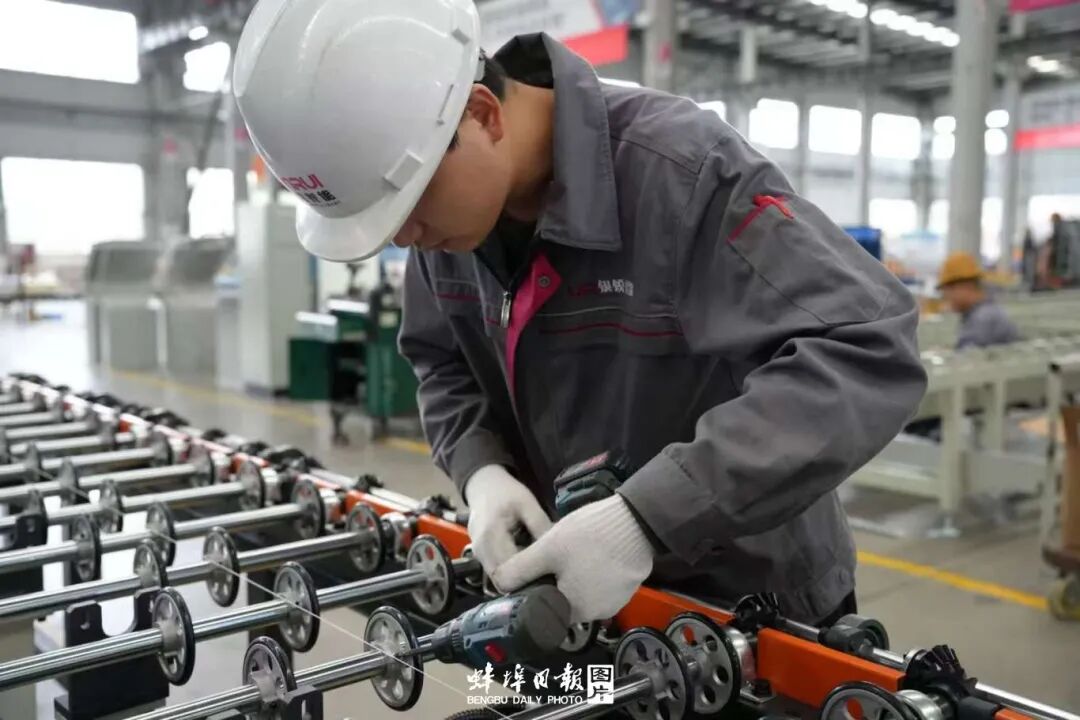 机器轰鸣,焊花轻闪。10月20日,走进位于怀远经开区的安徽银锐智能科技股份有限公司生产车间,映入眼帘的是一片火热景象。工人们正在多条装配线上紧张有序地忙碌,一台台印有醒目“YINRUI”标识的智能设备初具雏形,即将奔赴海内外客户手中。