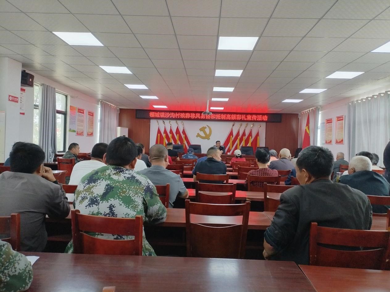 为弘扬社会主义核心价值观,推动乡村文明建设不断深化,近日,榴城镇沙沟村在村理论宣讲室组织开展殡葬移风易俗与抵制高额彩礼主题宣传活动。村“两委”干部、党员代表、群众代表等共同参与,凝聚文明共识,共建和谐乡村。