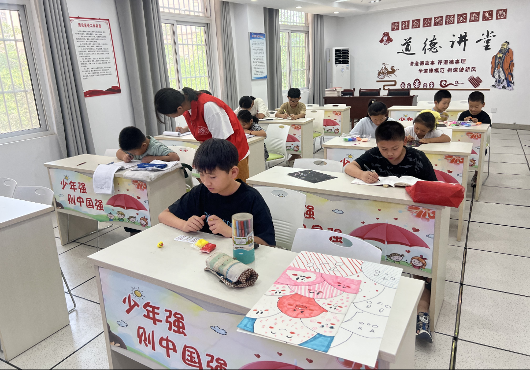 打造“新”课程,让公益课堂有“料”又有“味”。整合多方社会资源,打造“1+2+N”立体化服务矩阵。“1”即新时代文明实践所、站,“2”即“周末双休班+寒暑假托管班”双轨模式,“N”即多元社会组织,支持引导社会力量参与服务运营。在课程设置上,推出“1+N”课程体系。“1”是为孩子辅导作业的第一节课,“N”为益智、艺体等其他课程的第二节课。创新设置“长班+短班”“课堂+实践”模式。开设“漆扇制作”“手工剪纸”等长期课程和“农田环保实践”等短期活动。开发“长小青”线上课程,涵盖心理健康、青春期教育等主题,推动公益课堂从“单一供给”走向“多元共推”。
