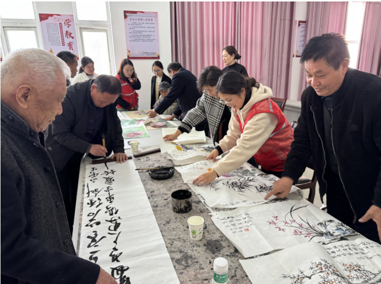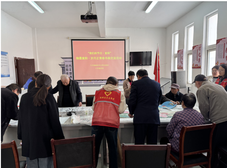 文化养老,精神共富。在镇新时代文明实践所,一场以“翰墨重阳·岁月正青春”为主题的书画交流活动正在温情上演。活动邀请了镇书法协会的老同志们齐聚一堂,他们精神矍铄,挥毫泼墨,以书画寄情怀,以笔墨抒心意。现场墨香四溢,佳作频出,一幅幅书法作品笔力遒劲,一张张水墨画作意境悠远,充分展现了老同志们老有所学、老有所乐、老有所为的精神风貌和深厚的艺术功底。