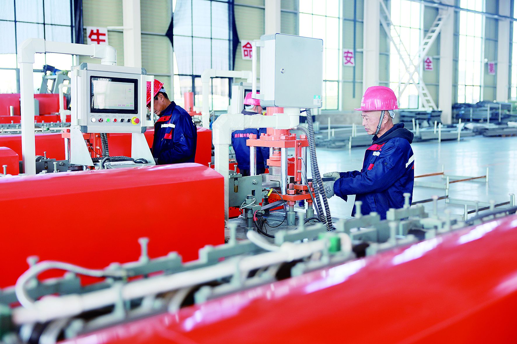 鼎盛制冷年产11000台冷却塔项目现场,一线员工按照订单要求严格生产。