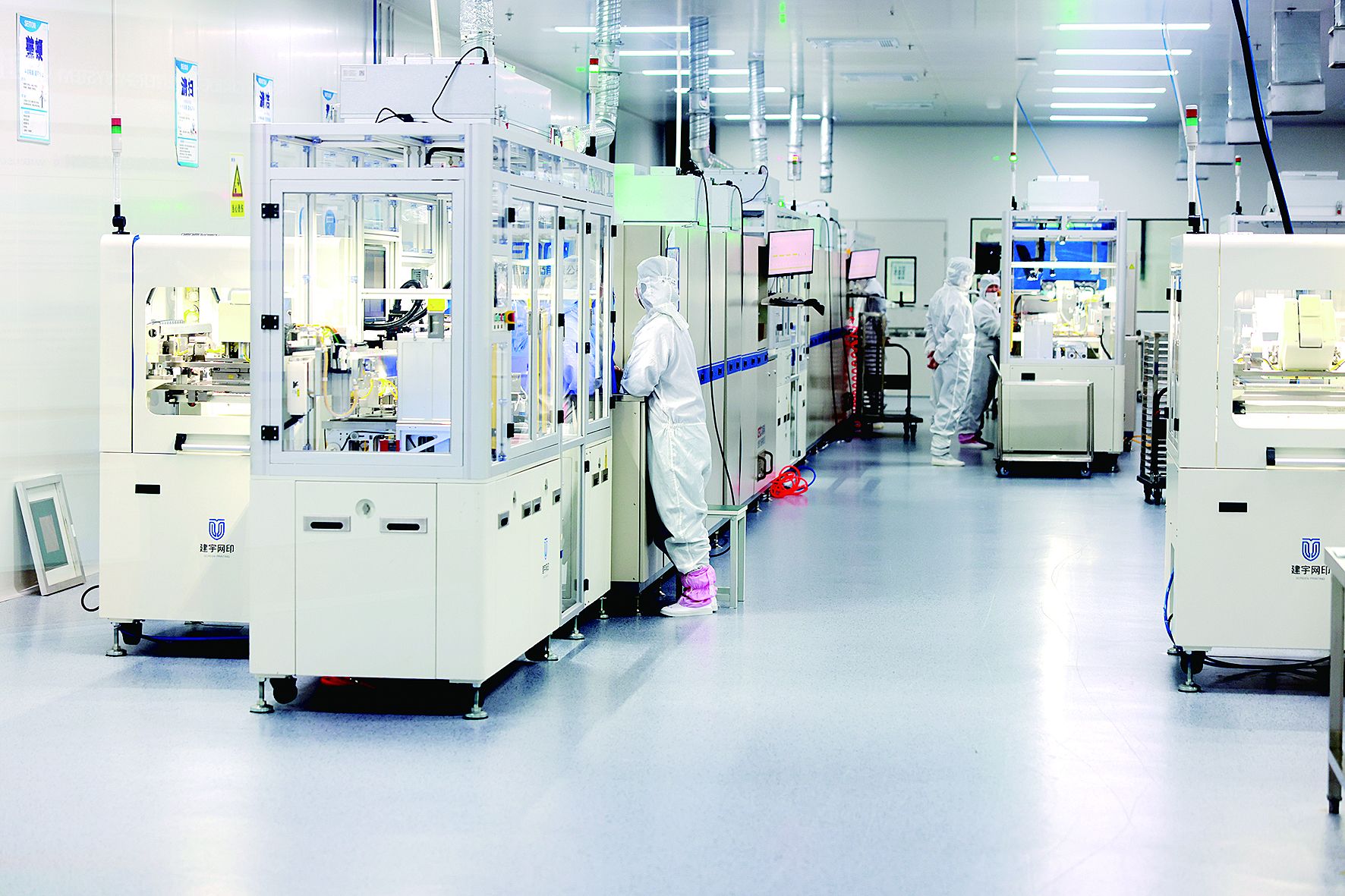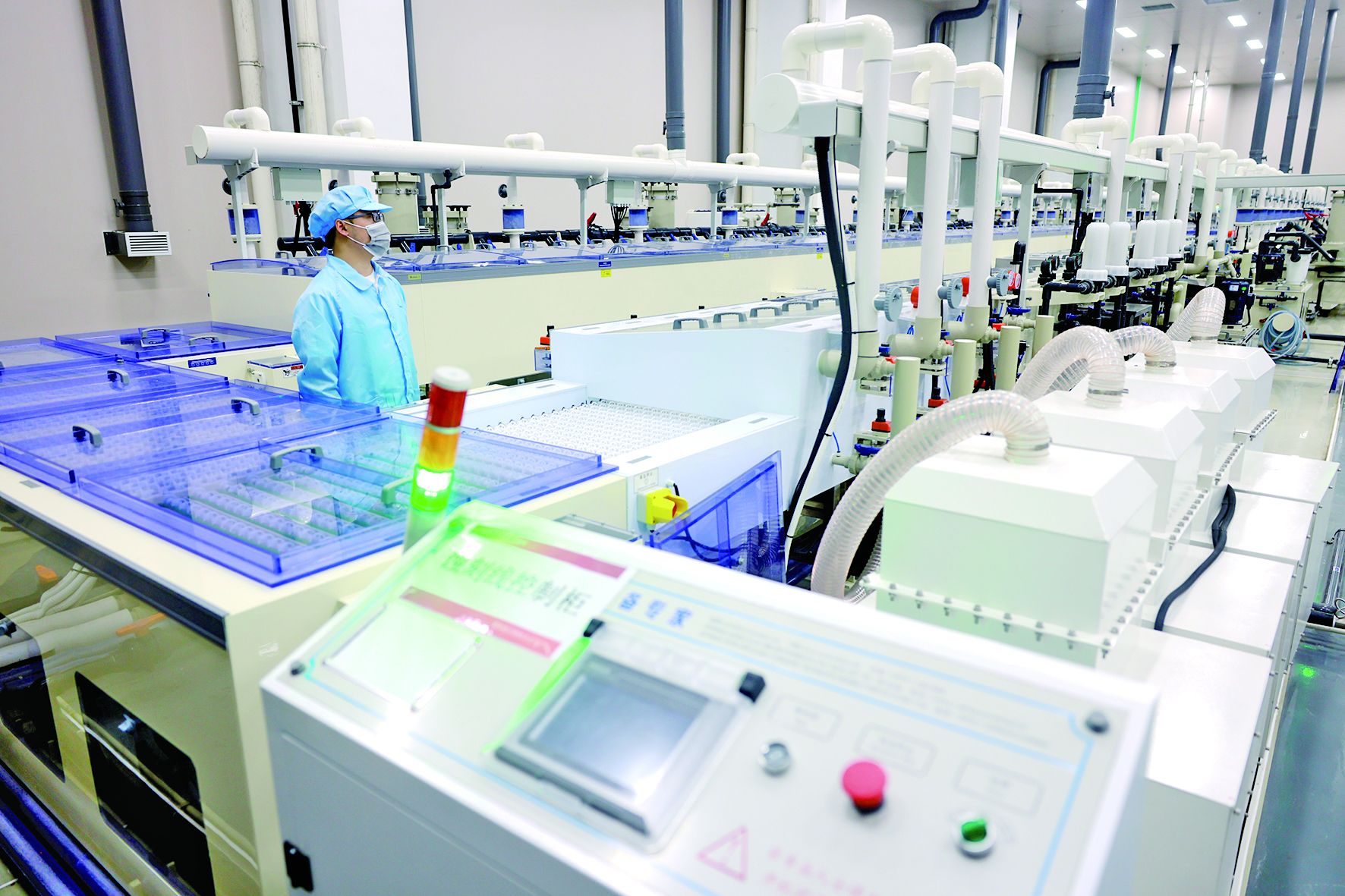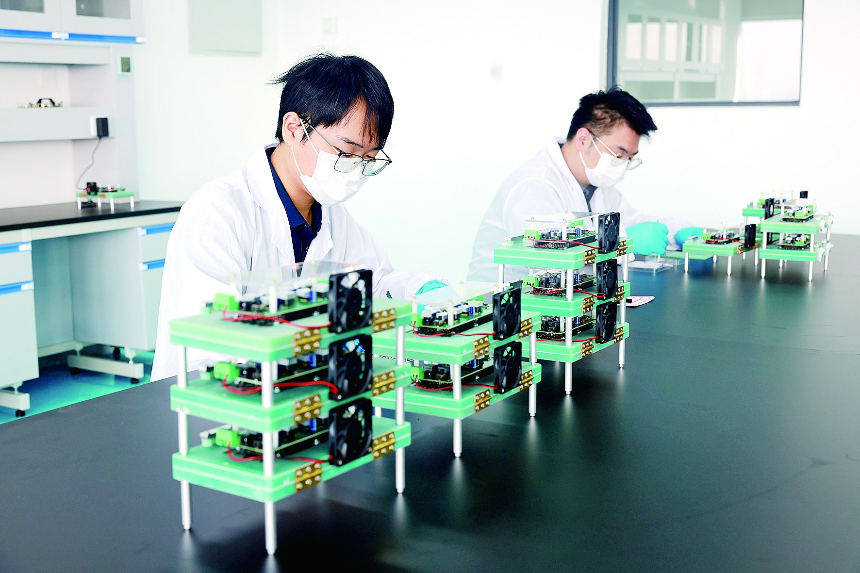 中科微感中国传感谷嗅觉传感器研发制造基地项目工作人员安装调试产品零部件。