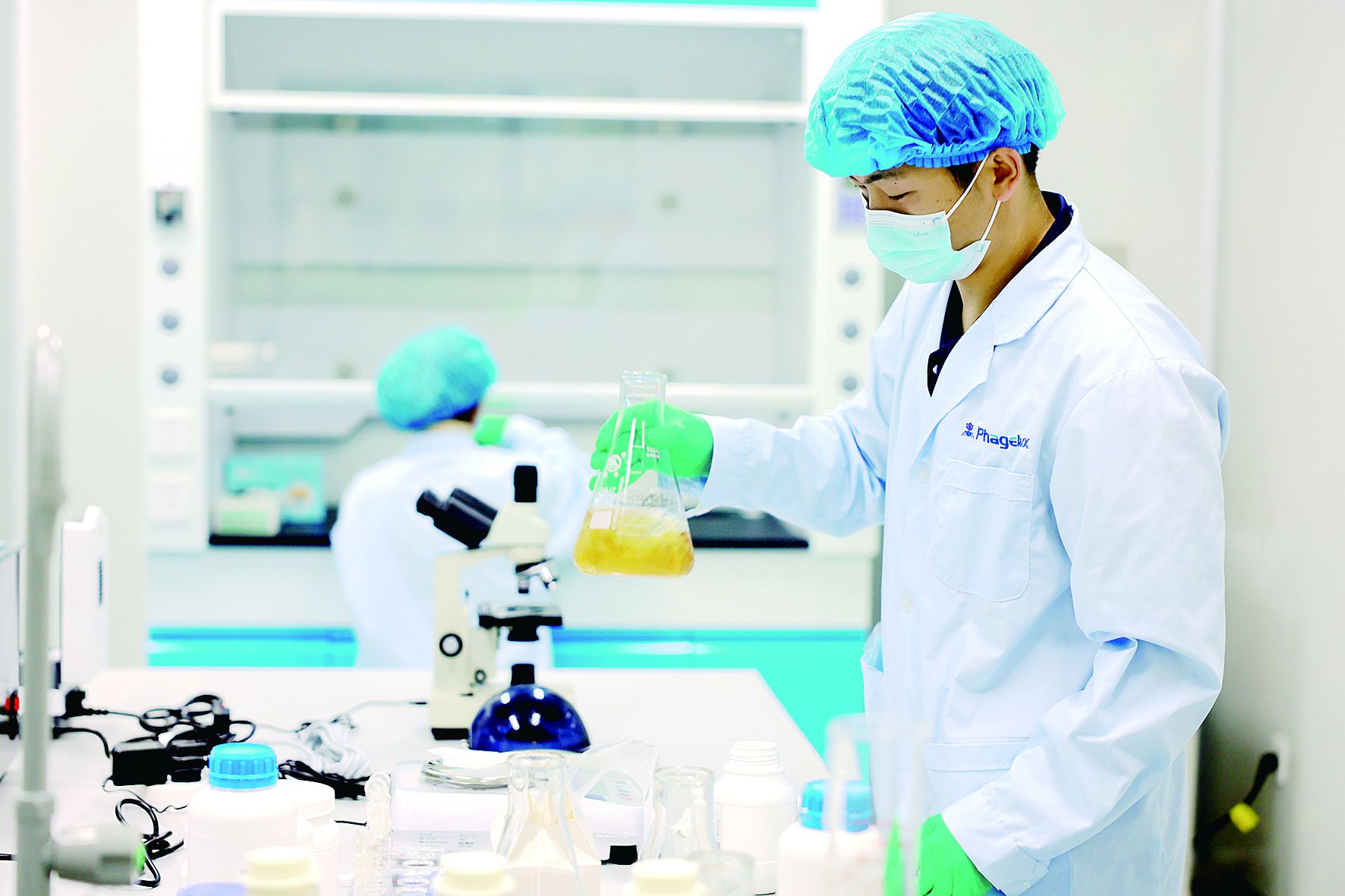 菲吉乐科生物科技噬菌体产业项目技术人员进行产品实验。
