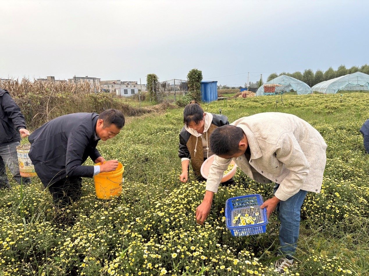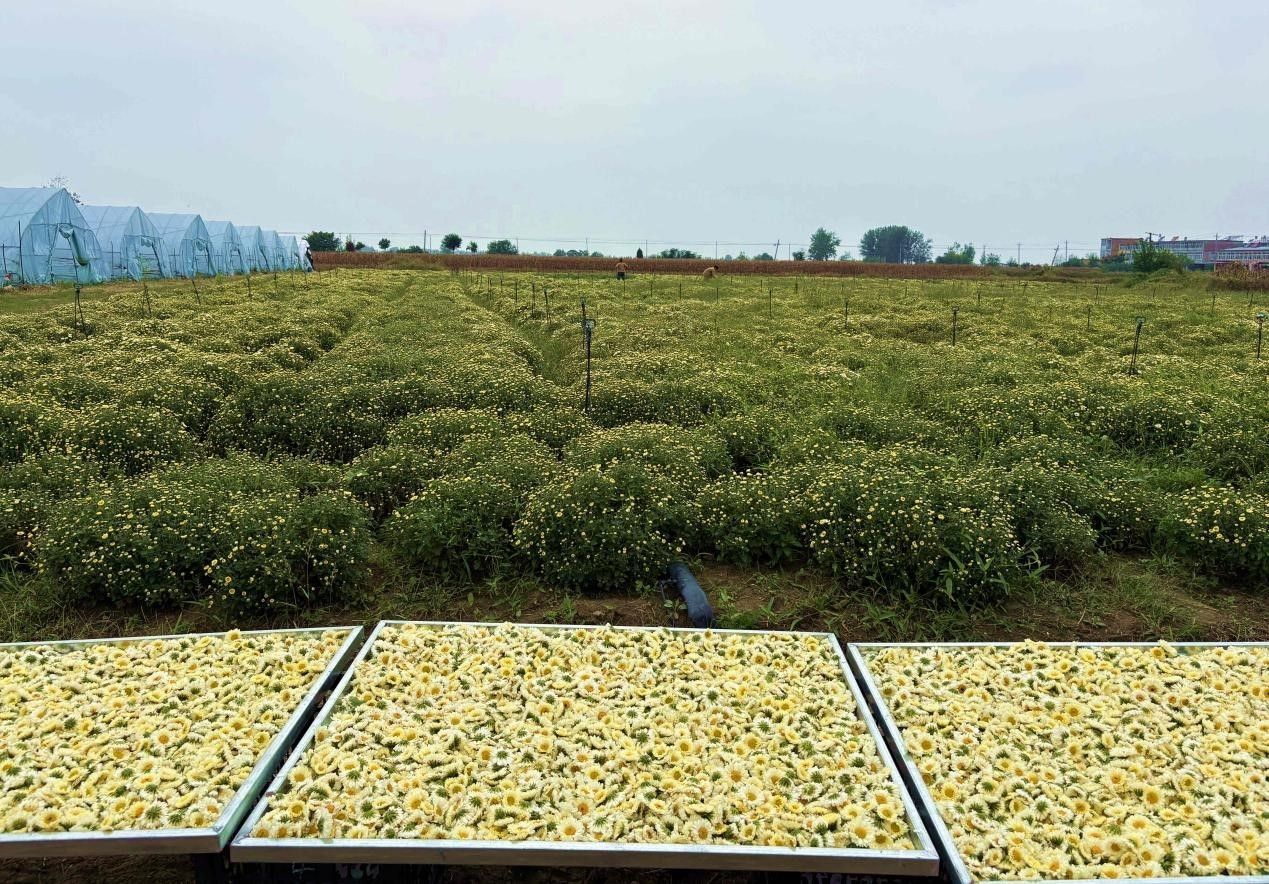 技术+市场双保障,产业发展底气足。为确保首种成功,曹郢村为这二十亩菊花上了“双保险”。技术上,村里实施统一精细管理,并邀请农业专家全程指导,确保种植技术过硬;市场上,提前与相关企业签订保底回购协议。采收后的菊花经标准化烘干处理,直接由企业收购,彻底化解了“种不好、卖不掉”的担忧。
