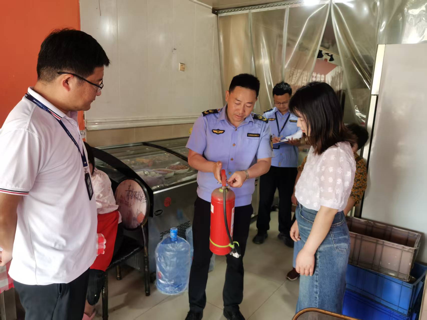 精准排查。在入户检查中,工作人员重点聚焦燃气软管安全性,逐户检查软管接口是否松动、管体是否硬化,并提醒居民及时更换超期软管。同时,消防人员对餐饮场所消防设施展开全面排查,现场演示消防栓使用方法,强调“消防栓是初起火灾的关键防线,必须确保完好有效”。