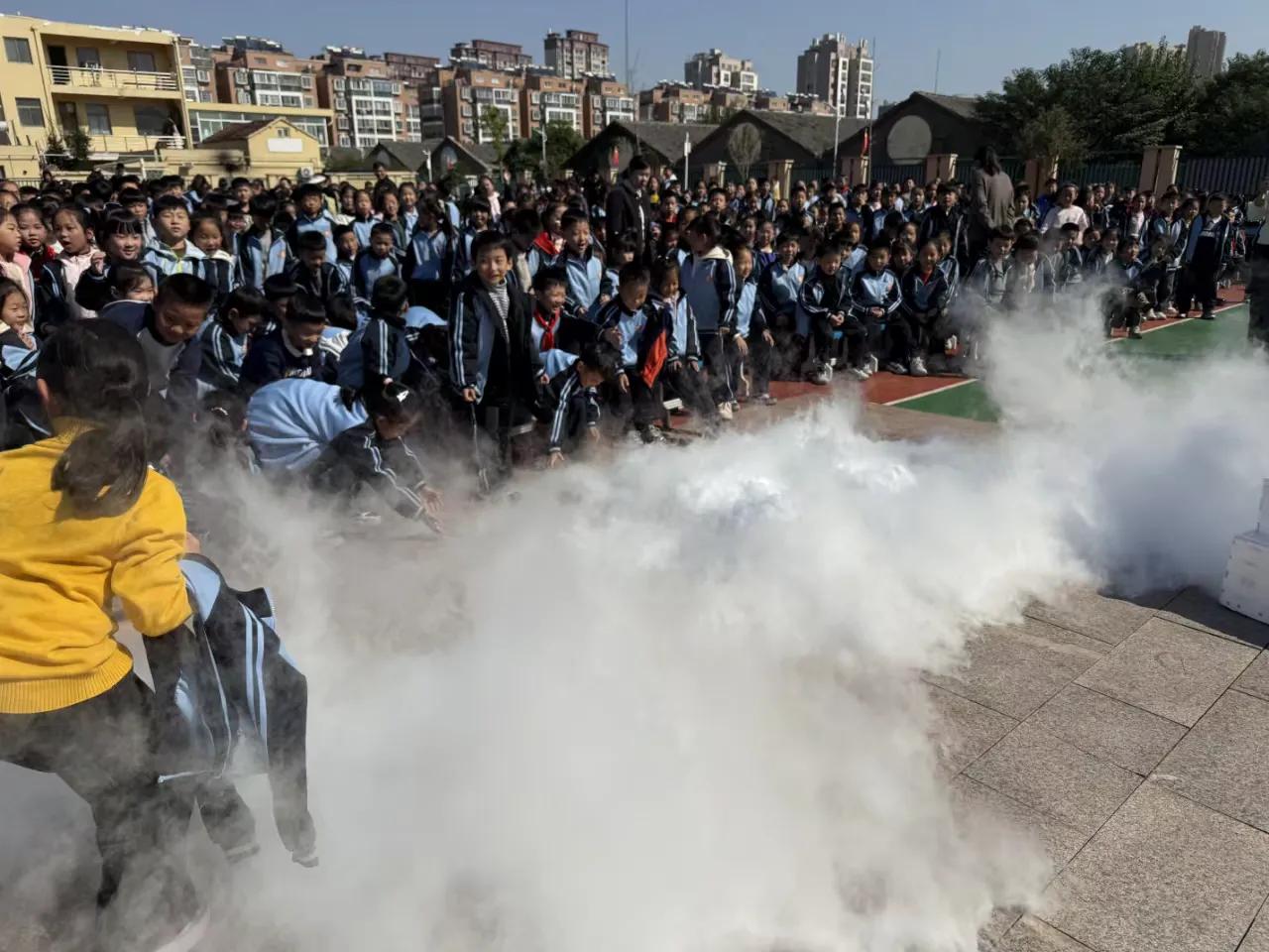 开幕式的表演环节将科技魅力展现得淋漓尽致。蚌埠市科技馆王朝阳老师带领“科学TIME工作室”团队带来了一个个精彩科学实验表演。奇妙的科学现象让同学们大开眼界,在惊叹中感受科学的趣味与神奇;学校社团老师带来的酷炫机器人登场表演,灵活的机械动作、精准的指令响应,让同学们直观看到科技的灵动与创意;震撼全场的干冰秀,梦幻的白雾与奇妙的变化交织,将科技的神奇深深印在每一位师生心中。