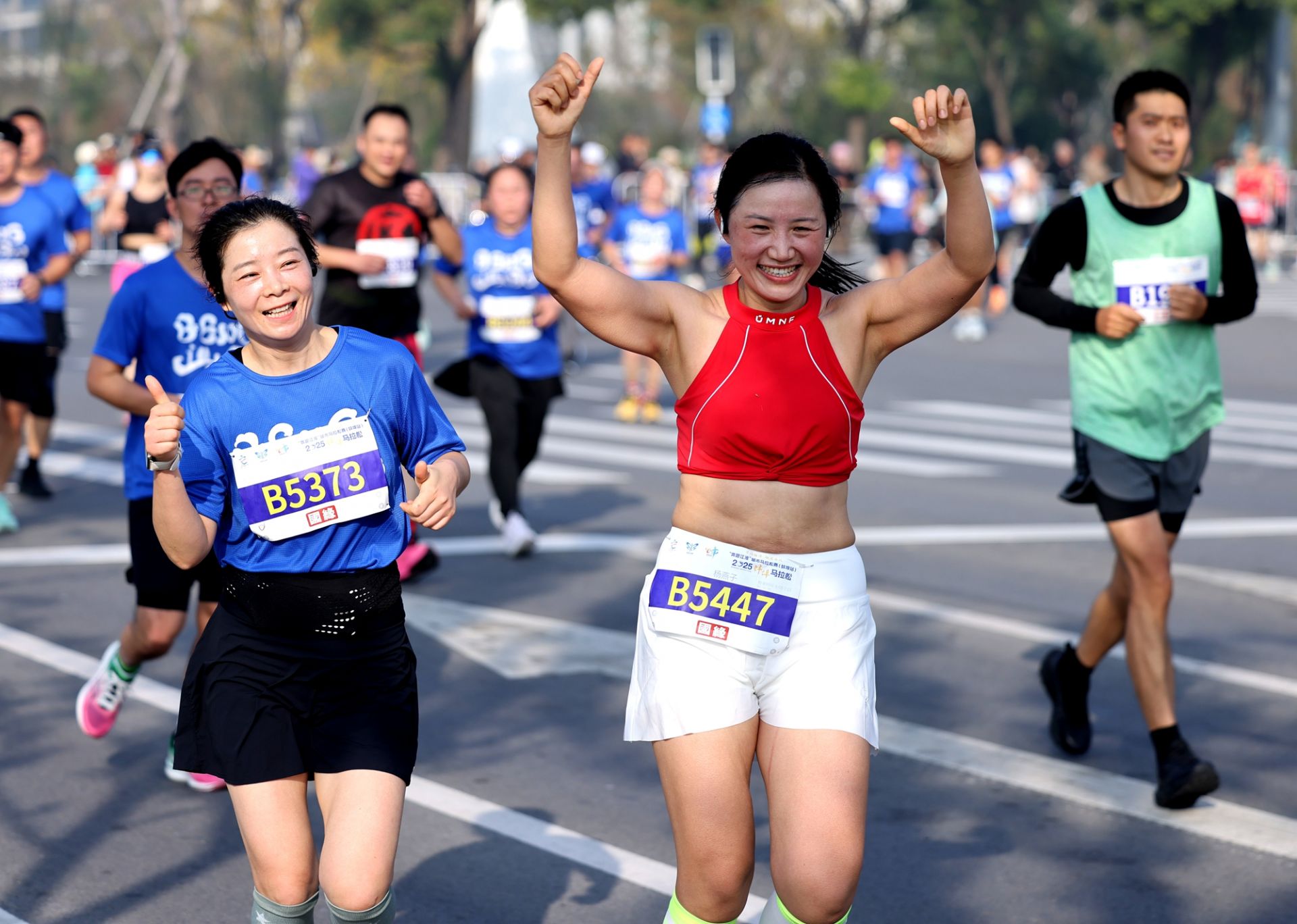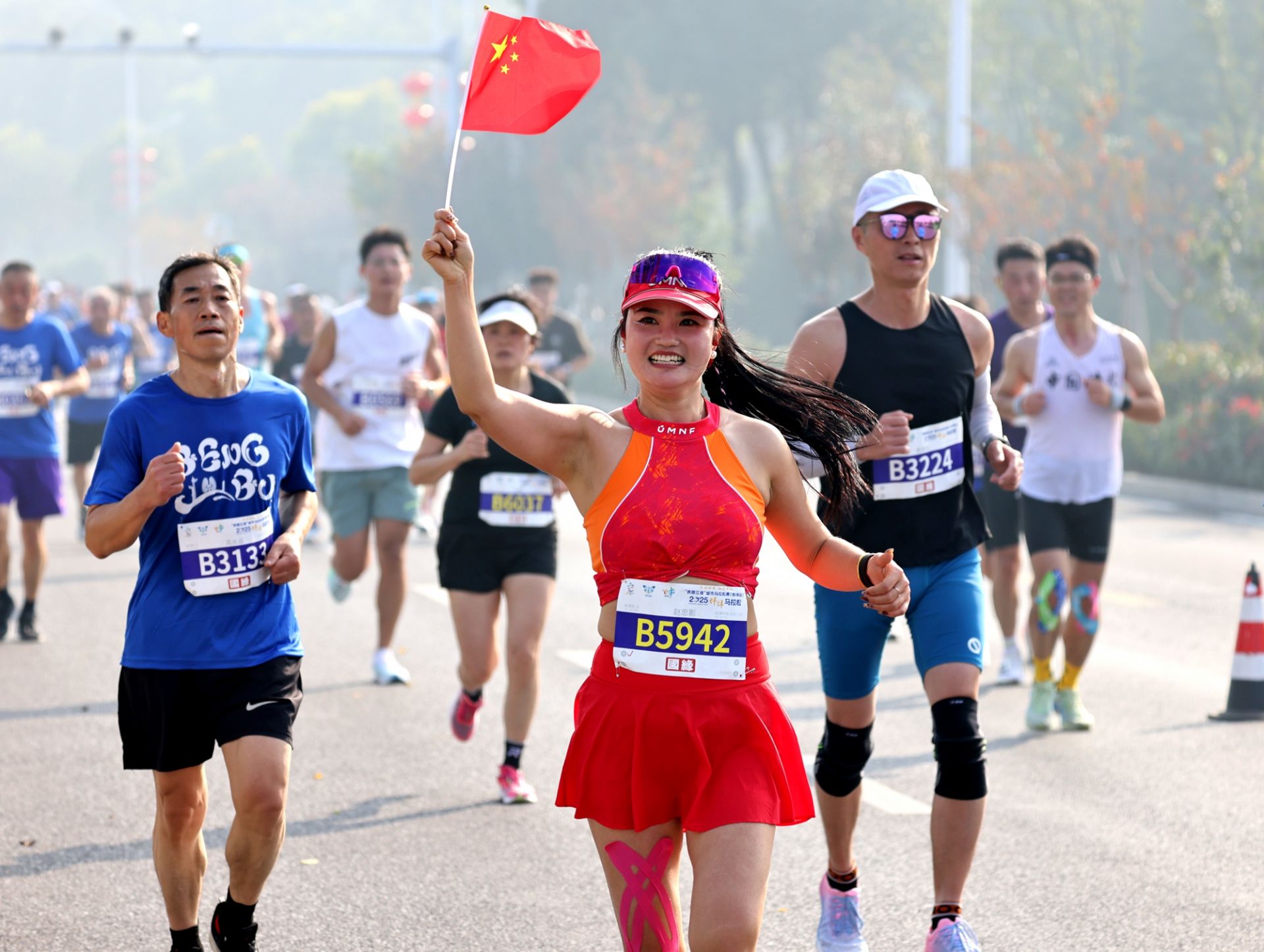 11月2日上午,2025蚌埠马拉松激情开跑。本届赛事由中国田径协会认证,安徽省体育局与蚌埠市人民政府联合主办,蚌埠市文化旅游体育局承办。作为安徽省“奔跑江淮”城市马拉松赛今年下半年第一场全马赛事,蚌埠马拉松坚持中国田径协会A1类赛事标准,延续“高规格、高品质、高体验”的办赛理念,参赛规模达8000人,汇聚了30个省份、自治区、直辖市的选手参赛。上午7时30分,随着发令枪响,选手们陆续冲出起跑线,从蚌埠体育中心出发,一边享受奔跑的乐趣和挑战,一边欣赏珠城的美丽风景,实现了运动激情与自然美景的完美交融。此次比赛设马拉松、半程马拉松两个参赛项目。经过激烈的角逐,选手吴正林、苟焕琼分别夺得男子和女子马拉松项目冠军,张辛祺、任秀枝分别获得男子和女子半程马拉松项目冠军。据了解,此次蚌埠市共发动超千名志愿者参与赛事服务,全程布设22个医疗站,构筑无缝应急网络,为选手和市民游客营造了安全有序的参赛观赛环境。