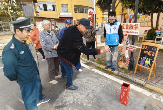 为营造和谐温馨的社区氛围,一场专为老年人设计的“乐龄趣味游园会”拉开帷幕。游园活动内容丰富、形式多样,既有传统民俗体验,也有趣味互动游戏。活动现场设置了多个游戏摊位“投壶纳福”“掷沙包”“转呼啦圈”等,既考验眼力与手力,又充满乐趣。老年朋友们兴致勃勃地参与其中,每完成一个项目就能获得兑换券兑换“暖心关爱包”,传递着社区的细致关怀。