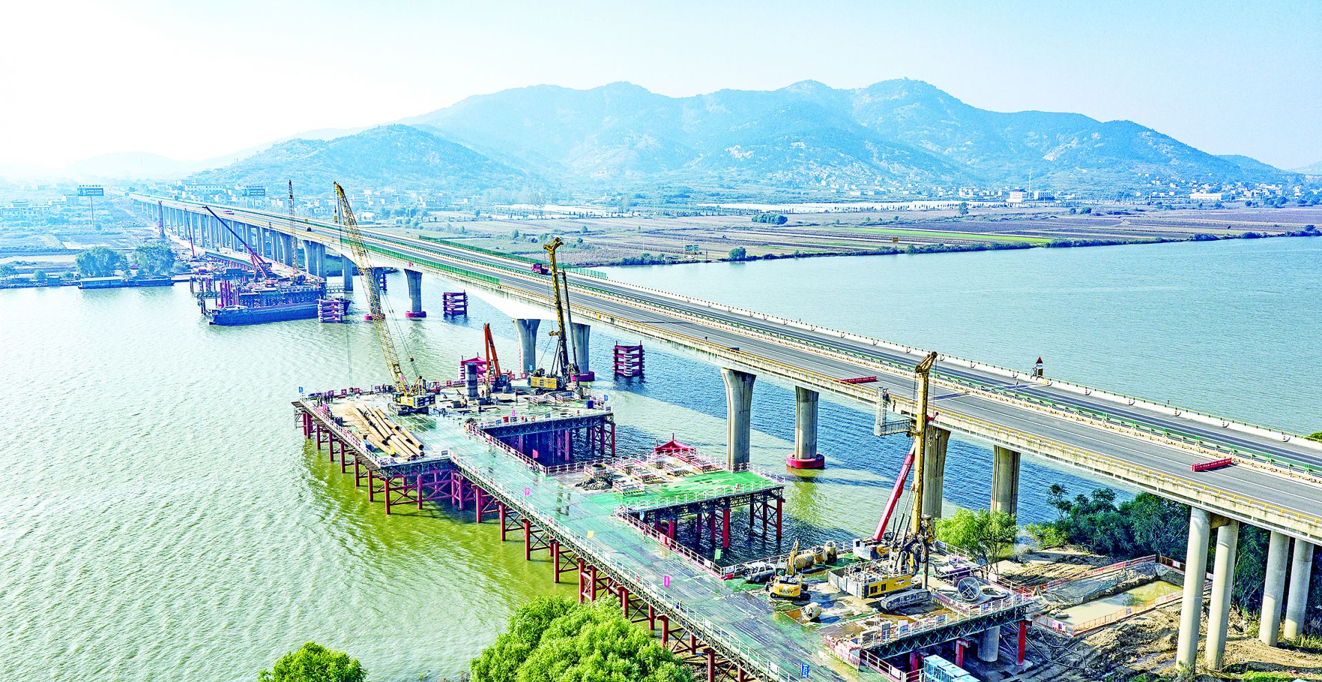 从当前施工进展来看,项目推进效率超出预期。在北岸施工区域,钢栈桥及施工平台已全部完成建设并通过验收,这一临时工程为后续桩基施工、材料运输提供了重要保障;截至目前,北岸已完成54根桩基施工,占总量的60%,剩余桩基计划于今年12月底前全部完工,且系梁墩柱首件工程已顺利通过验收,为后续批量施工确立了技术标准。