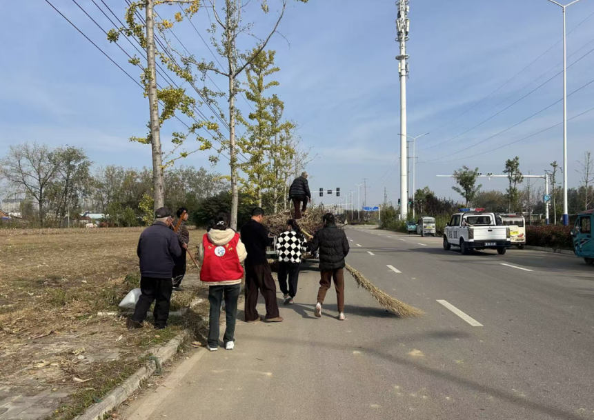 “五边清理”中,志愿者们随身携带工具,对路边、田边、沟边的秸秆落叶及时处置,累计200余人次参与,清运杂物220余袋,疏通堵塞沟渠13条,彻底消除卫生死角与禁烧隐患。