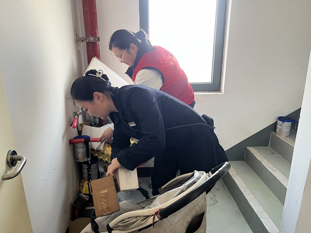 网格员在日常走访中发现,小区楼道内杂物堆积问题严重,旧家具、纸箱、废旧花盆等杂物以及屡禁不止的电动自行车违规停放和充电行为,不仅影响了环境卫生,更如同埋在楼内的“隐形炸弹”。随着冬季来临,天干物燥,楼道内一旦遇有明火,后果不堪设想。湖滨社区中心社区联合辖区所有物业公司,共同发起了一场针对楼道杂物的专项清理行动,共同扫除消防安全路上的“绊脚石”。