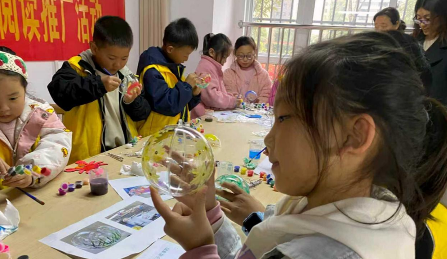 11月8日,尚河源筑阅读点里掌声阵阵,“感恩相伴,悦读成长”阅读推广活动在此温情开展。志愿者老师以绘本《不向日葵》为载体,用细腻生动的讲述,带领读者走进充满温暖与力量的故事世界,解读书中“感恩陪伴、珍惜美好”的核心理念,引导孩子们体会亲情、友情的珍贵。为深化阅读感悟,现场设置了趣味知识问答环节,围绕绘本内容设计的一个个问题,激发了读者的参与热情,大家踊跃举手、积极应答,在轻松互动中巩固阅读收获,将感恩的种子播撒心间。手工创作环节更是创意迸发,读者们或在透明亚克力球上勾勒童真图案,或为萌趣风铃搭配鲜艳色彩,一件件独一无二的作品不仅展现了动手能力,更传递着对生活的热爱。活动以阅读为桥,让感恩意识在潜移默化中滋养心灵,助力读者在悦读中成长。