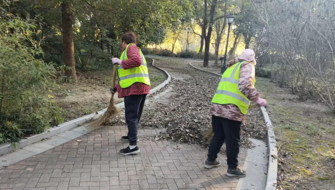 园林路灯管理所同步协调汉兴园林管护公司,组织80名园林工人,配备大扫把、竹耙、拖拉机等工具,对城西公园、市民广场、许慎公园及三八河景观带等7处公共场所进行全面清扫。工作人员采用“分片包干、打堆转运”的方式:先用竹耙将草坪上的落叶集中扫成堆,再用拖拉机转运;对树穴、步道缝隙等细节区域,用小扫把逐一清理。此次行动共清扫落叶近15吨,公园广场内的草坪重现翠绿,步道干净通畅,不少市民驻足称赞:“落叶扫干净了,散步心情都变好了!”