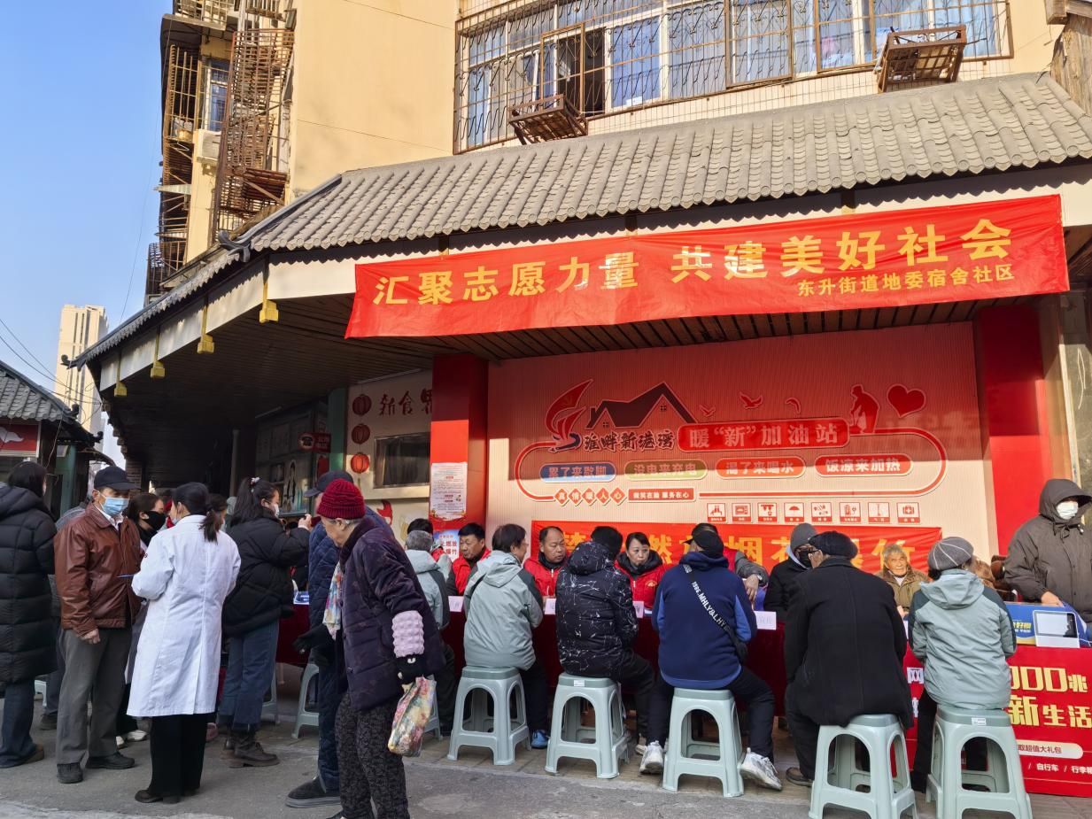 在第 40个国际志愿者日的温暖氛围日渐浓厚之际,12 月 3 日,龙子湖区东升街道地委宿舍社区主动牵线搭桥,搭建起多元资源联动平台,携手蚌埠友谊医院、蚌埠电信公司交通路营业厅、中医救援蚌埠办事处,以“汇聚志愿力量、共建美好社会”为核心主题,共同举办了一场贴近民心的便民服务活动。活动现场,鲜艳的“志愿红” 传递热忱、圣洁的“医护白”守护健康、专业的“电信蓝”带来便利、暖心的“中医绿”送去舒缓,四色交织成动人的服务图景。量血压、内科问诊、外科咨询、骨科检查、中医推拿、理发、免费贴膜、修电瓶车、法律咨询、心理咨询、反诈宣传、政策宣传等 12 项服务,被精准送到居民“家门口”,这场多方联动的暖心行动,更在社区悄然绘就了一幅满含温度与幸福感的民生画卷。