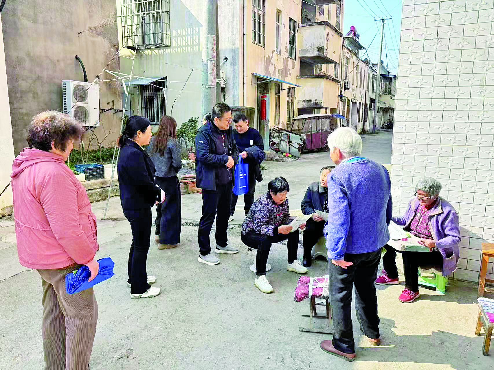网格员向居民宣讲城乡居保政策。