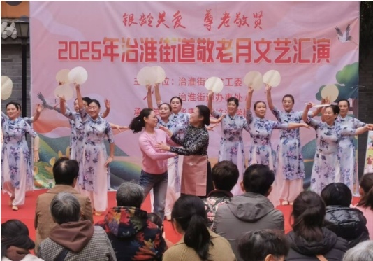 为满足老年人日益增长的精神文化需求,街道精心策划并举办了一场以“银龄关爱尊老敬贤”为主题的文艺汇演。活动在激昂的开场舞《五星红旗》中拉开帷幕,随后,诗词朗诵《琵琶行》、黄梅戏《女驸马》、豫剧《抬花轿》等经典节目轮番上演,赢得了现场老年观众的阵阵掌声。整场活动掌声阵阵、暖意融融,不仅为老年朋友们献上了一场文化盛宴,更极大地营造了辖区尊老爱老的浓厚社会氛围,让“老有所乐”的幸福图景变得更加生动可感。