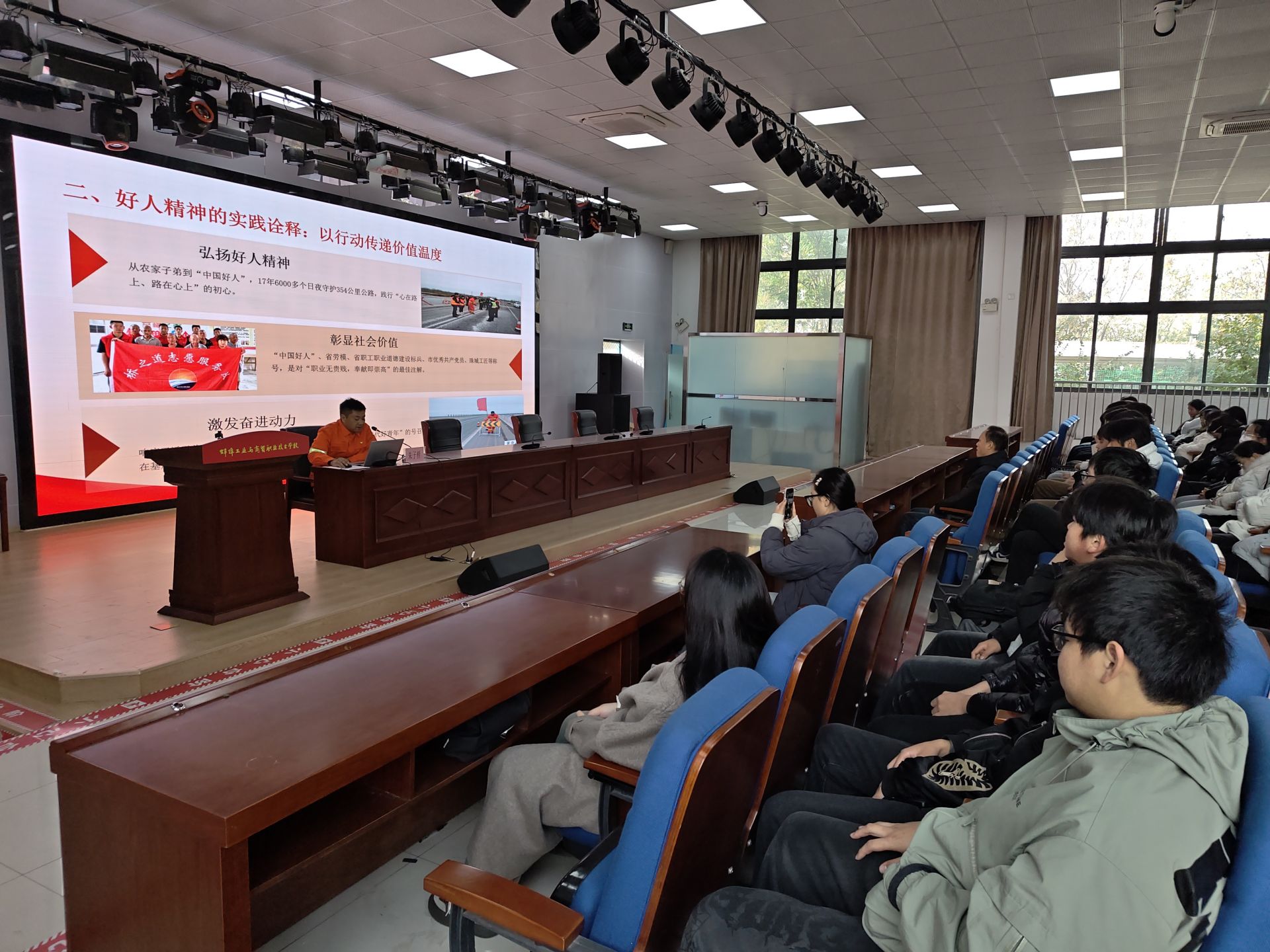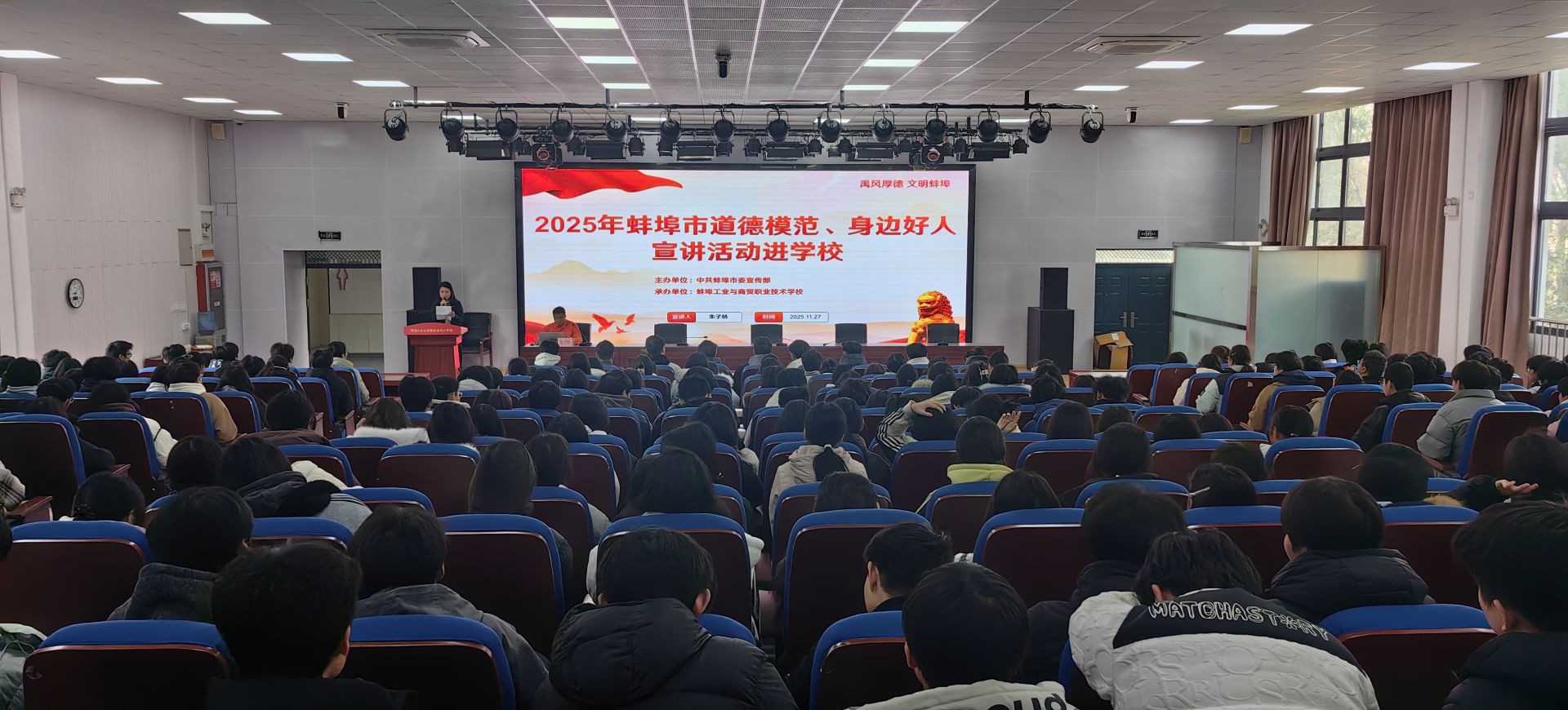 近日,由中共蚌埠市委宣传部主办的“禹风厚德 文明蚌埠”——2025年蚌埠市道德模范、身边好人宣讲活动,走进蚌埠工业与商贸职业技术学校,中国好人、蚌埠市蚌固一级公路养路工人朱子桥,为师生们带来一场直抵心灵的分享。