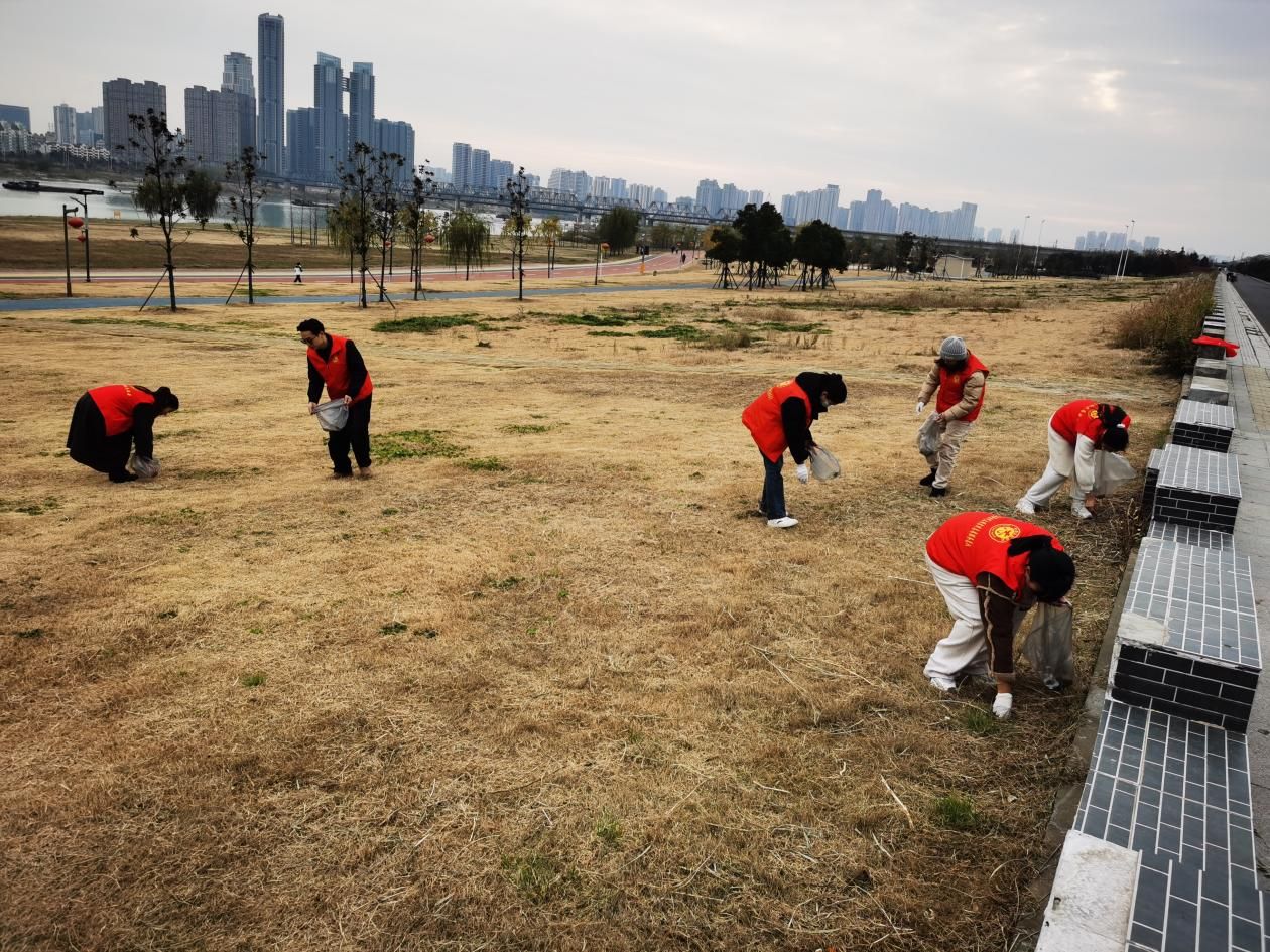 活动当天,志愿者们身着统一“红马甲”,手持清洁工具,精神饱满地投入到环境清理工作中。大家分工明确、互相配合,细致清理了花海步道、绿化带及河岸边的塑料袋、饮料瓶、纸屑等各类杂物。经过数小时的辛勤劳动,靓淮河花海区域的环境面貌焕然一新,为市民和游客营造了更加舒适宜人的休闲空间。