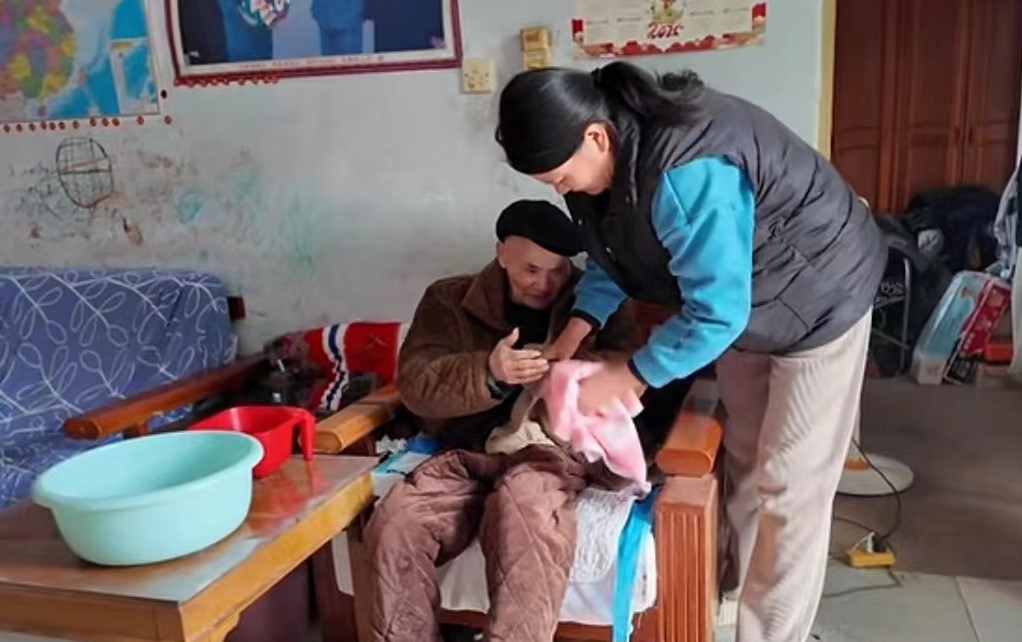 公公落下半身瘫痪、口齿不清的后遗症,出院后,老人生活不能自理。曹子娟肩上的担子更重了,端水喂饭、洗脚、清理秽物。尽管生活并不宽裕,曹子娟却总能将清贫的日子过得暖意融融。她时常笑着说:“吃穿用度,够用就好。”