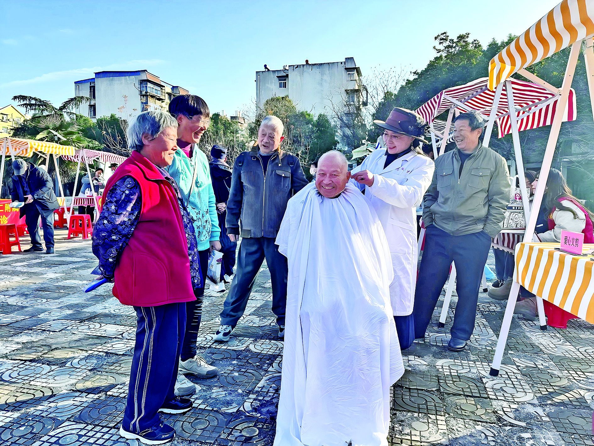 12月15日,南湖社区在南湖小区大广场开展“幸福15”志愿服务活动,为居民提供爱心义剪、磨刀、口腔及健康义诊等服务,同步解读公积金政策,并设置“幸运滚滚乐”互动环节,将温暖与便利送到居民家门口。(陈飞飞 )