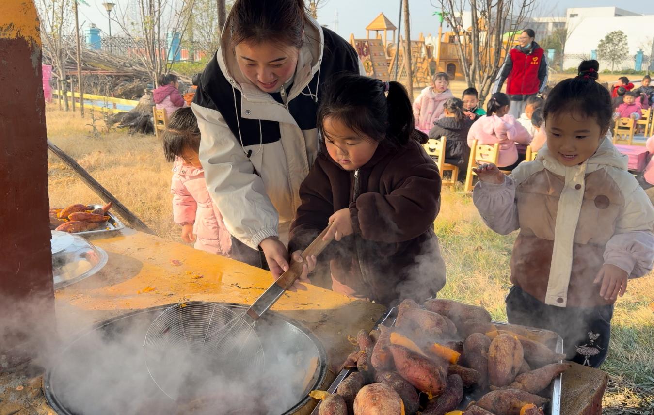 “看,水开始冒泡泡了!”“红薯的香味飘出来啦!”孩子们围在安全距离外,兴奋地观察着锅中的变化。老师们一边操作,一边讲解着冬至时节“补冬”的传统饮食文化。随着红薯煮熟,孩子们有序排队,领取自己那份暖暖的冬日甜蜜。大家围坐在一起分享着香甜软糯的红薯,不仅品尝到了传统美食的滋味,更体验到了集体分享的快乐。