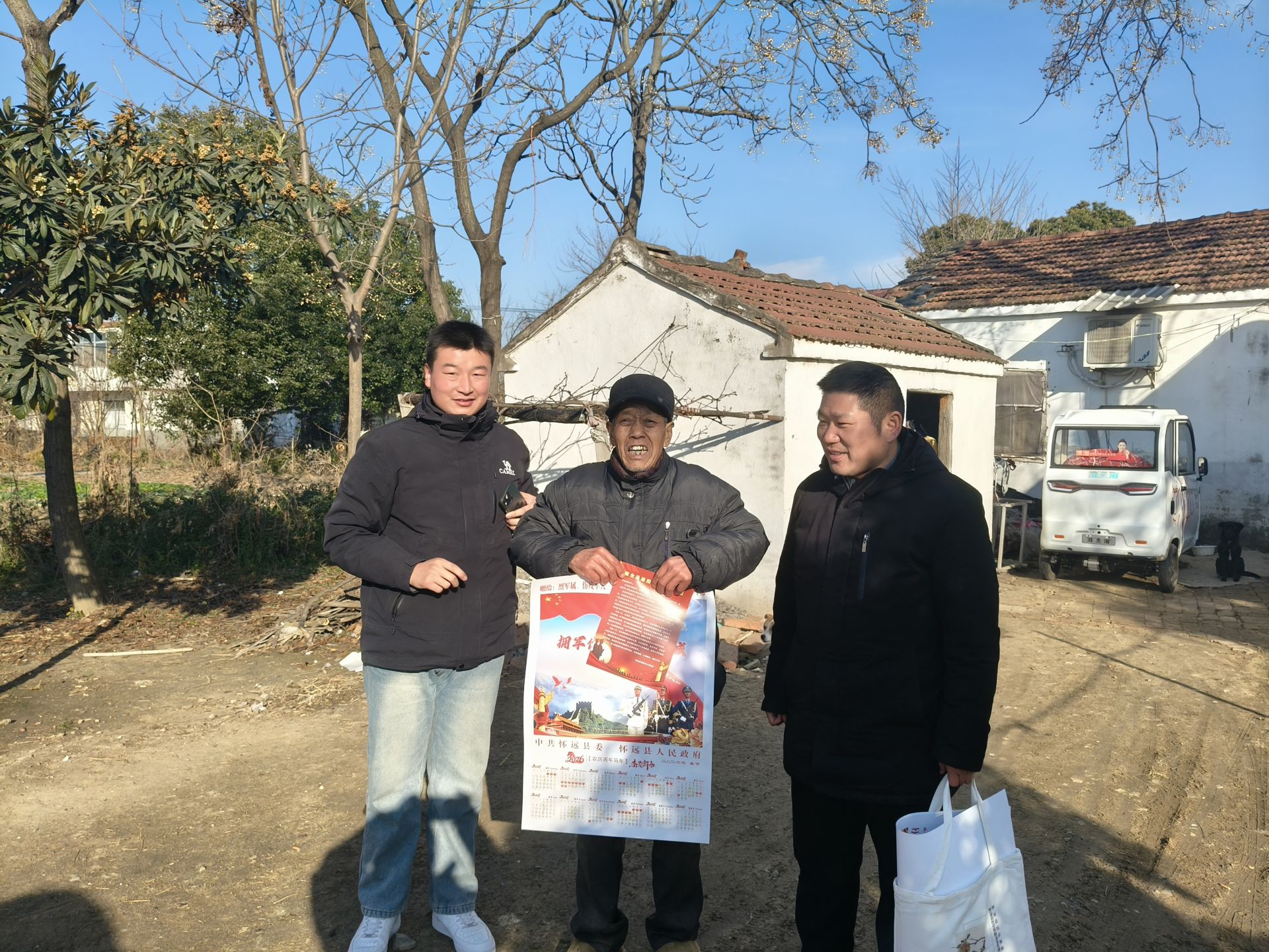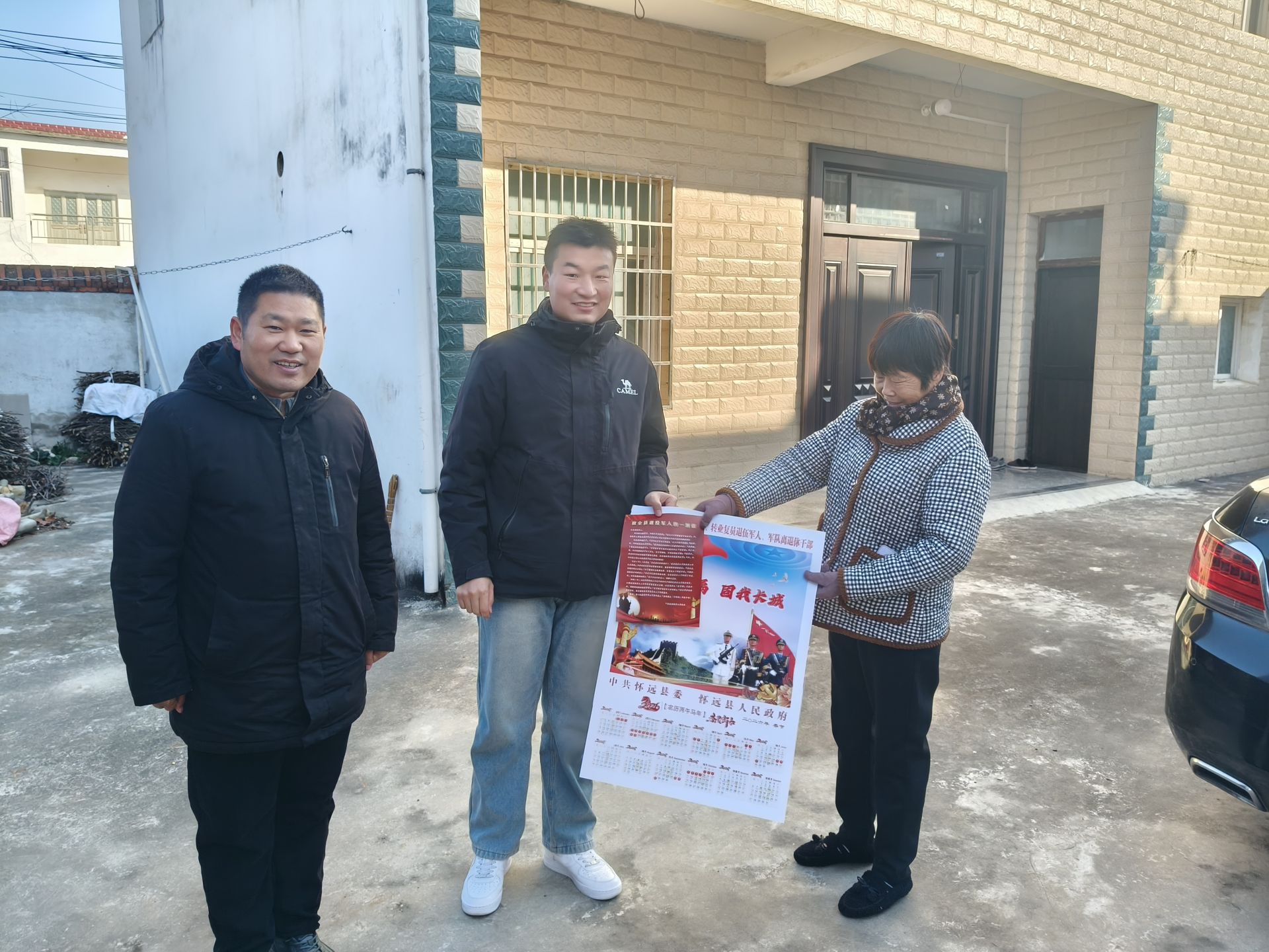 “这不仅是年画,更是组织颁发的‘新军功章’!”12月26日,怀远县常坟镇徐梅村64岁的退役军人陈良江,对着上门送来新年年画的驻村工作队,庄重地敬了一个军礼。寒冬时节,驻村工作队带领大学生后备干部常文龙、乡村振兴专干王凯,将27份印有“拥军优属 固我长城”字样及三军仪仗队、天安门、长城图案的新年年画,连同《致全县退役军人的一封信》,逐一送到老兵家中。