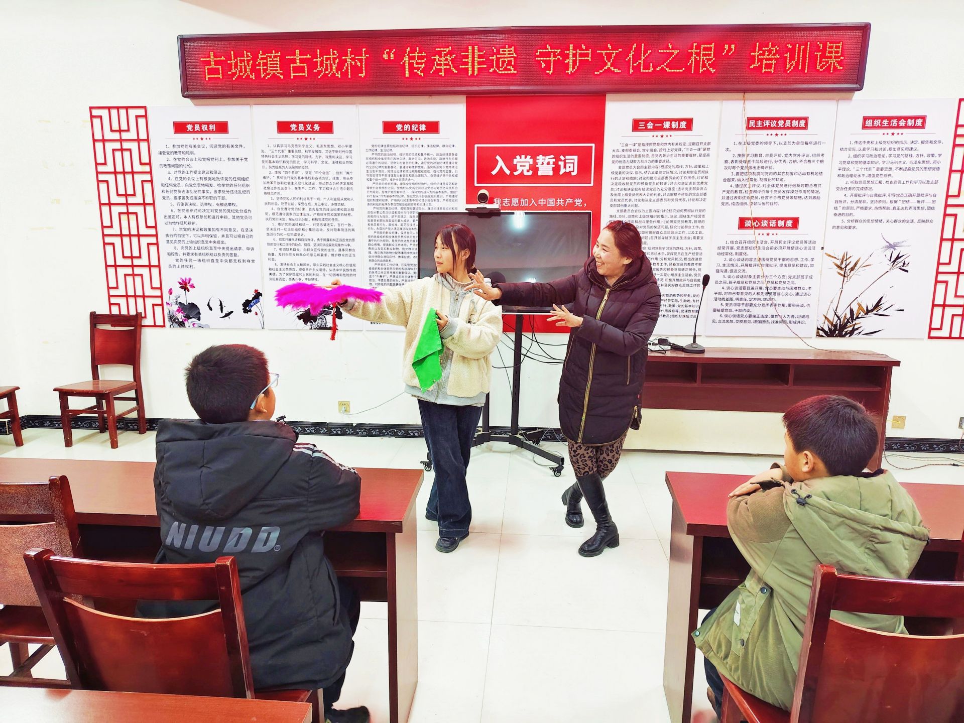 针对村内留守老人、儿童等群体,志愿服务队定期组织“义剪”“义诊”,为行动不便的老人提供上门服务;开展红色故事宣讲、手工课等,为孩子们创造更多实践机会,传递文明正能量,力争将文明新风融入群众日常生活。除此之外,古城村新时代文明实践站还组织花鼓灯教学,邀请非遗传承人为孩子们介绍花鼓灯的历史与发展,带着孩子们体验花鼓灯的基本步伐,学习花鼓灯的艺术知识,增强了他们对传统文化的认知。锣鼓声声动人心,文化传承靠吾辈,通过亲身体验,孩子们感受到了花鼓灯的艺术魅力,培养了他们对传统文化的兴趣,促进了传统文化的传承与发展。