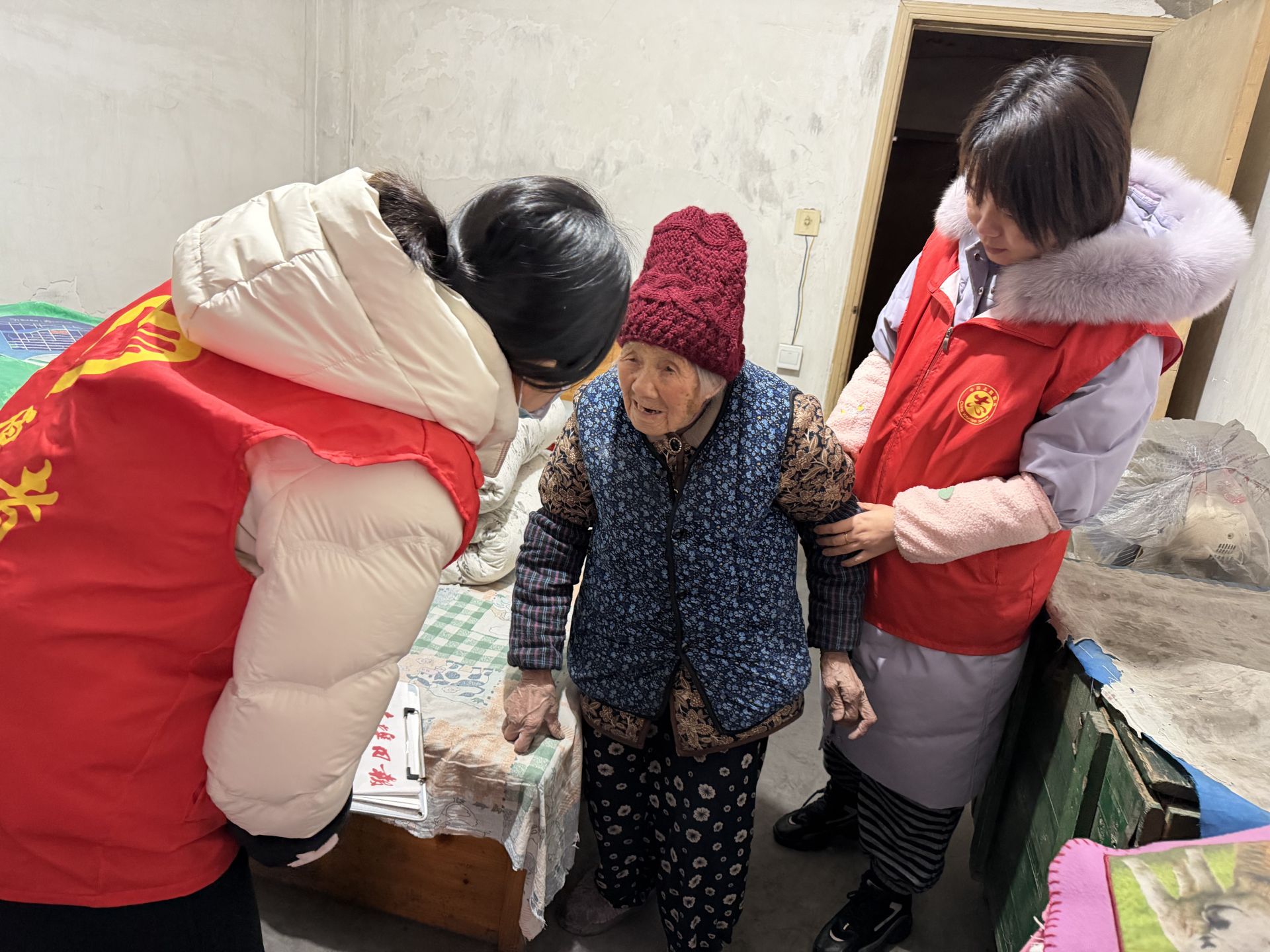 志愿者一行来到社区独居老人家中,询问他们的生活需求,耐心叮嘱他们雨雪天气要注意防寒保暖、保重身体,若有需求及时联系社区,社区将第一时间上门帮助解决困难,同时向他们强调安全用电、用火、用水,提醒外出时要断火断电。
