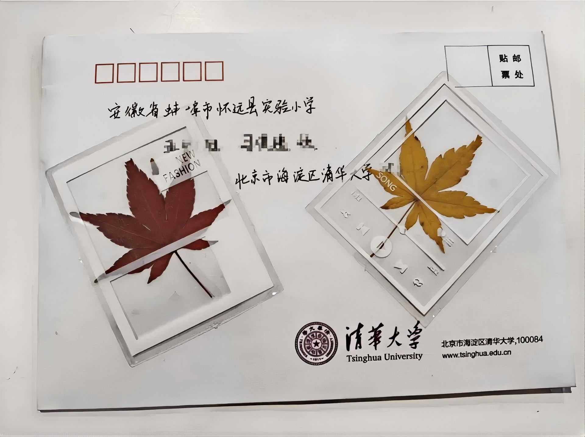 纸笺为媒,让乡土情怀与外界视野双向奔赴。孩子们在信中细数家乡的河流、香甜的怀远石榴,用稚嫩笔触勾勒龙亢的风土人情;清华学子则分享校园生活、解读古都文脉,随信寄来的银杏叶与雪中校园照片,让遥远的城市变得可感可知。双方共创的秋叶书签、半幅粘贴画,将两地风物定格,更在协作中培养了孩子们的审美与创造力,契合学校“以美育人”的教育追求。