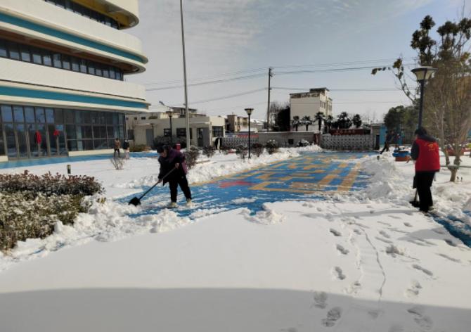 1月19日晚一场降雪将大地妆点得银装素裹,却也给人们出行带来了不便,甚至存在安全隐患。固镇县刘集中心幼儿园为保障全体师生及来园家长的出行安全,教职工们闻雪而动,次日一大早开展了热火朝天的扫雪除冰行动。