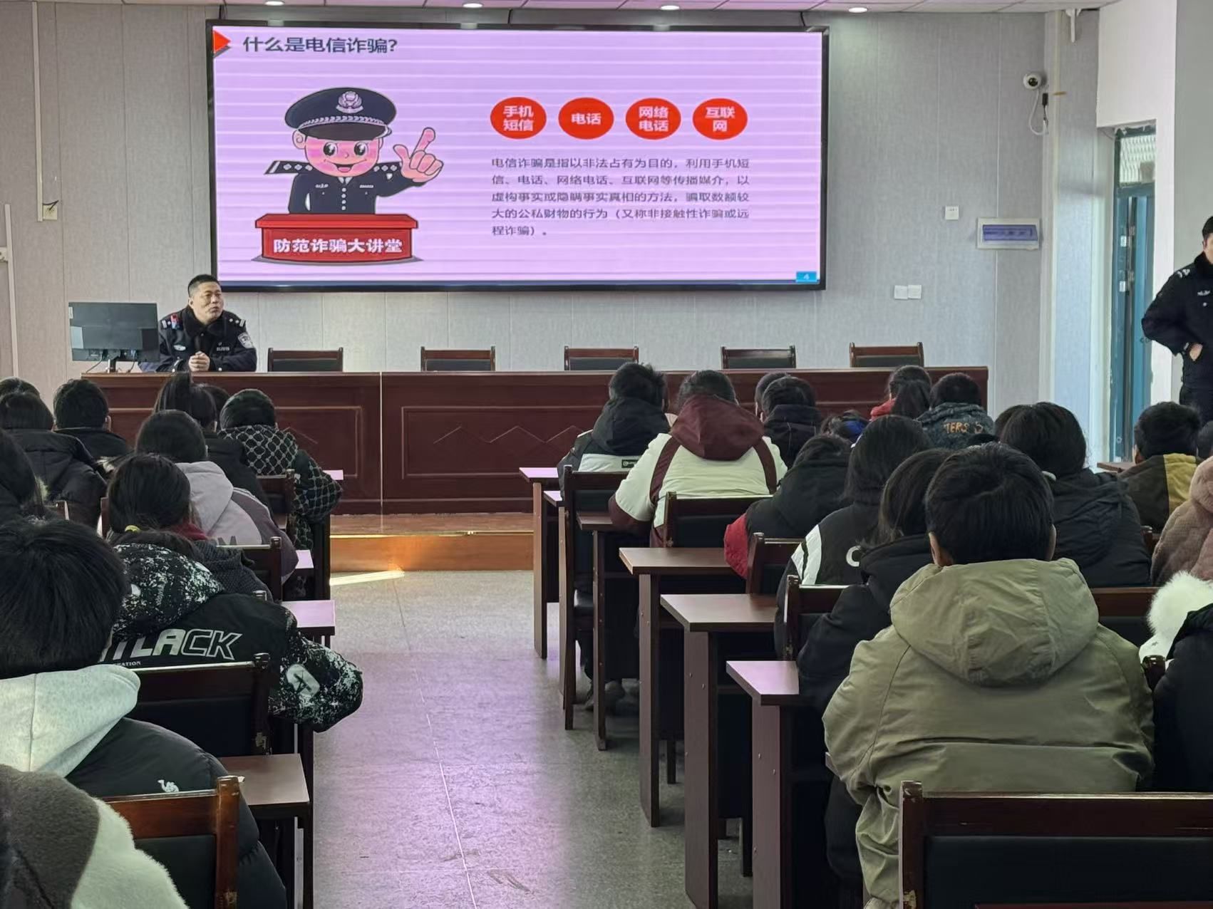 为有效防范电信网络诈骗在校园发生,1月22日上午,固镇县王庄镇仁爱中心小学特邀属地派出所民警开启“法治护航・平安成长”主题讲座,全校师生通过现场聆听与课堂直播双线联动,沉浸式接受了一场干货满满、生动鲜活的法治教育盛宴。